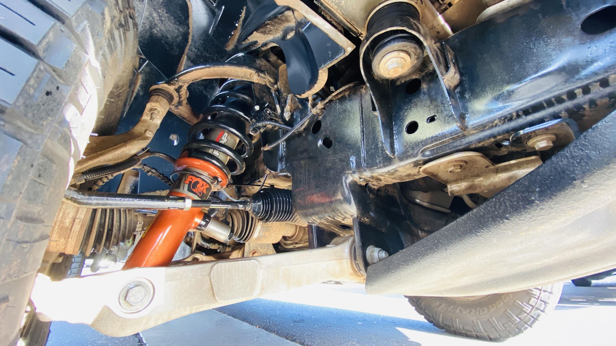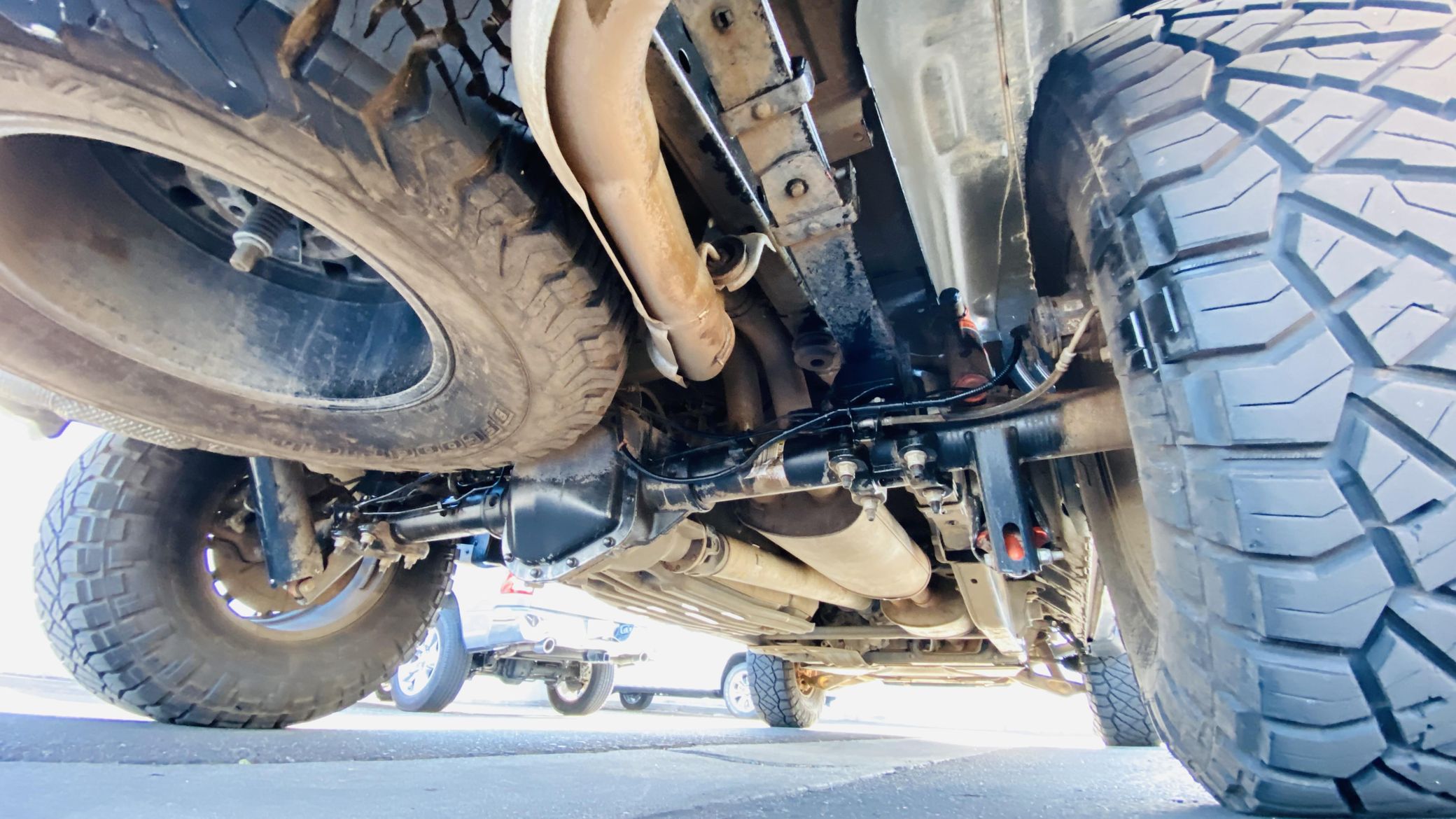 Modifications reported by the seller include 17-inch Fuel wheels wrapped by Nitto Ridge Grappler tires, a vent-to-atmosphere plug, an aftermarket front skid plate, and tinted windows.