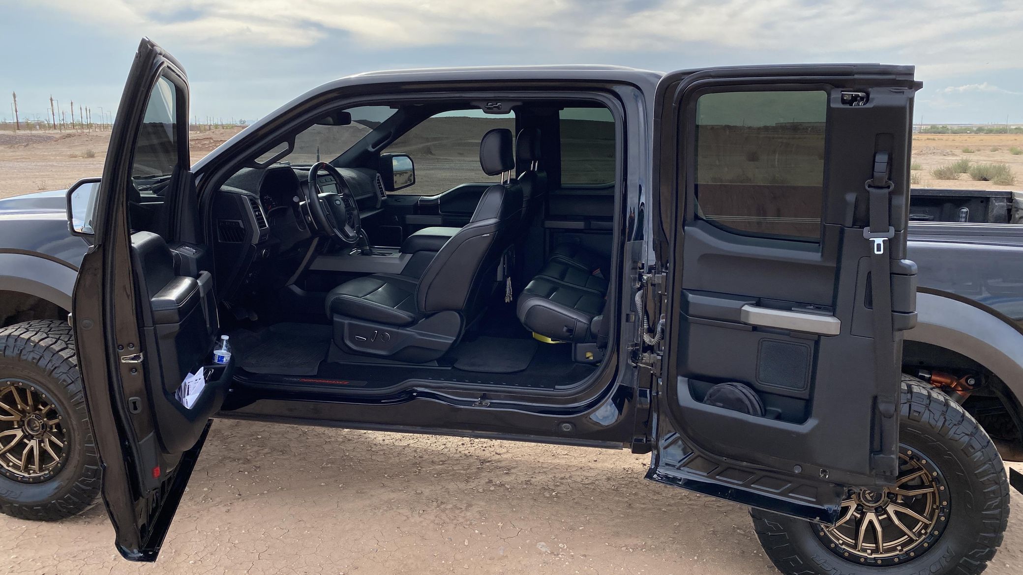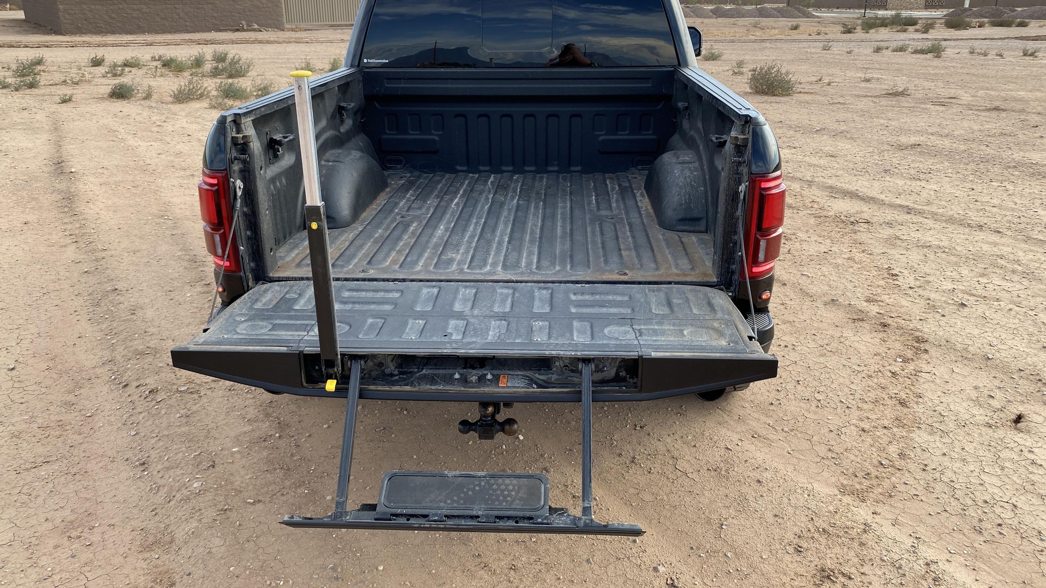 Highly optioned, this Raptor is equipped with the Equipment Group 802A, the Raptor Technology Package, LED headlights, a step integrated into the tailgate, a trailer hitch, heated and ventilated front seats, and power-adjustable pedals, among other features.