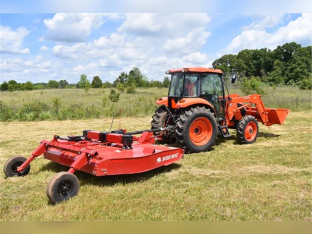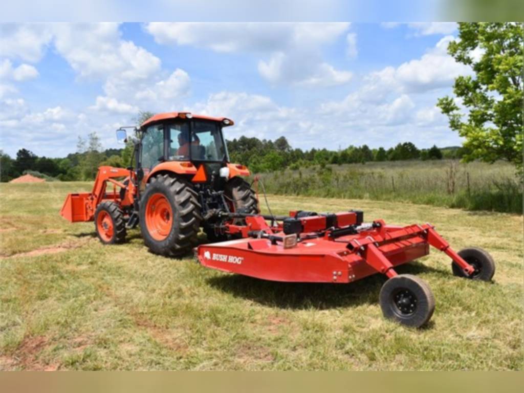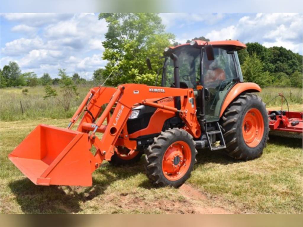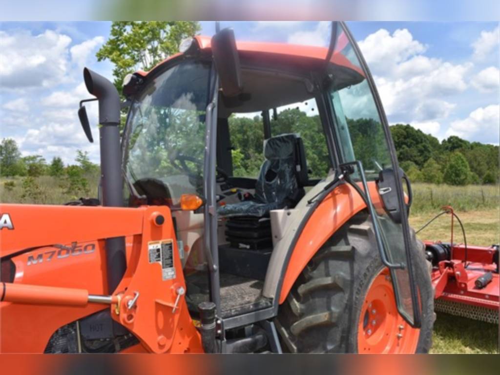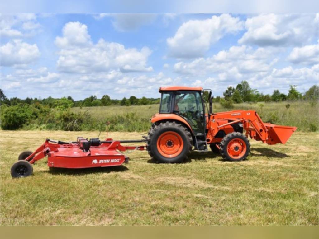 2019 KUBOTA M7060D, Farm Tractor, Enclosed Cab, 85 hours, Air Conditioner, Heater, Kubota LA1154 Front Loader Attachment, 72″ Wide General Purpose Loader Bucket, Manual Coupler, Manual Transmission, 3-Point Hitch, 540 rpm PTO (6 splines), Swinging Drawbar, 1 Rear Remote Hydraulic Circuits, 2 Mid Mount Remote Hydraulic Circuits, Rear Weights, 9.5-24 Front Tires, 16.9-30 Rear Tires , New 2310 BUSH HOG /10 feet wide.