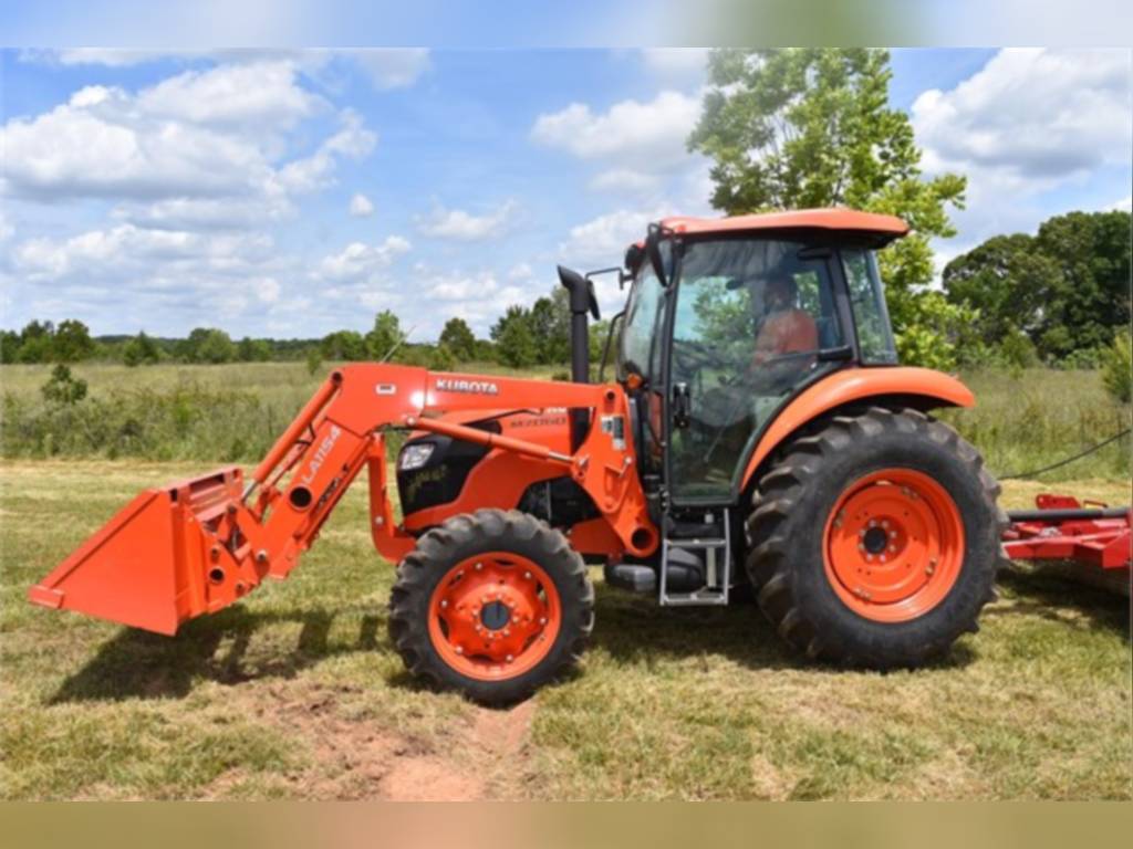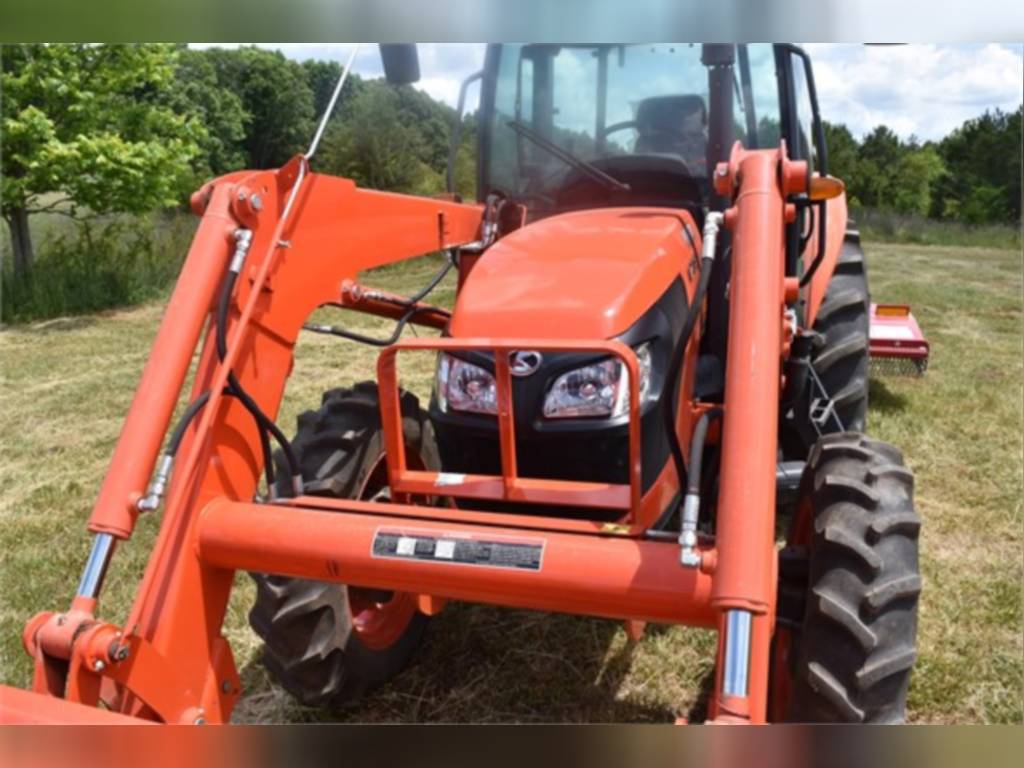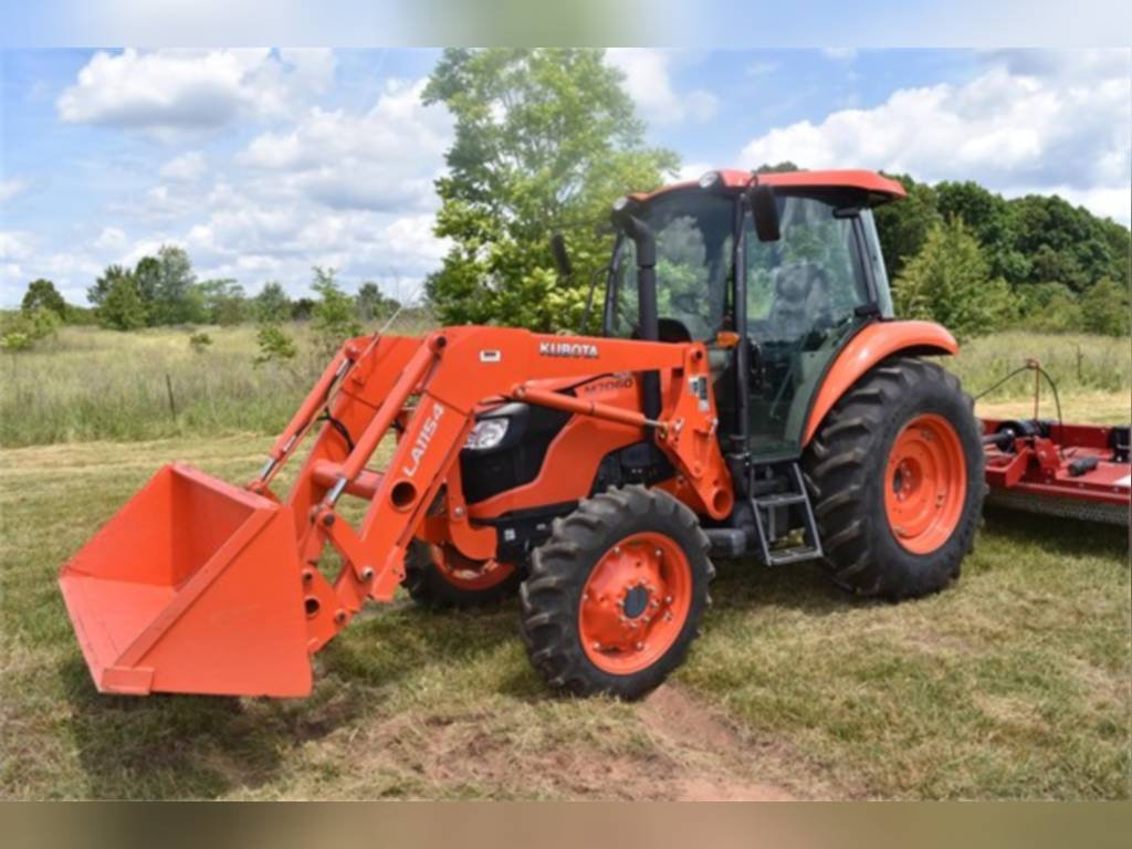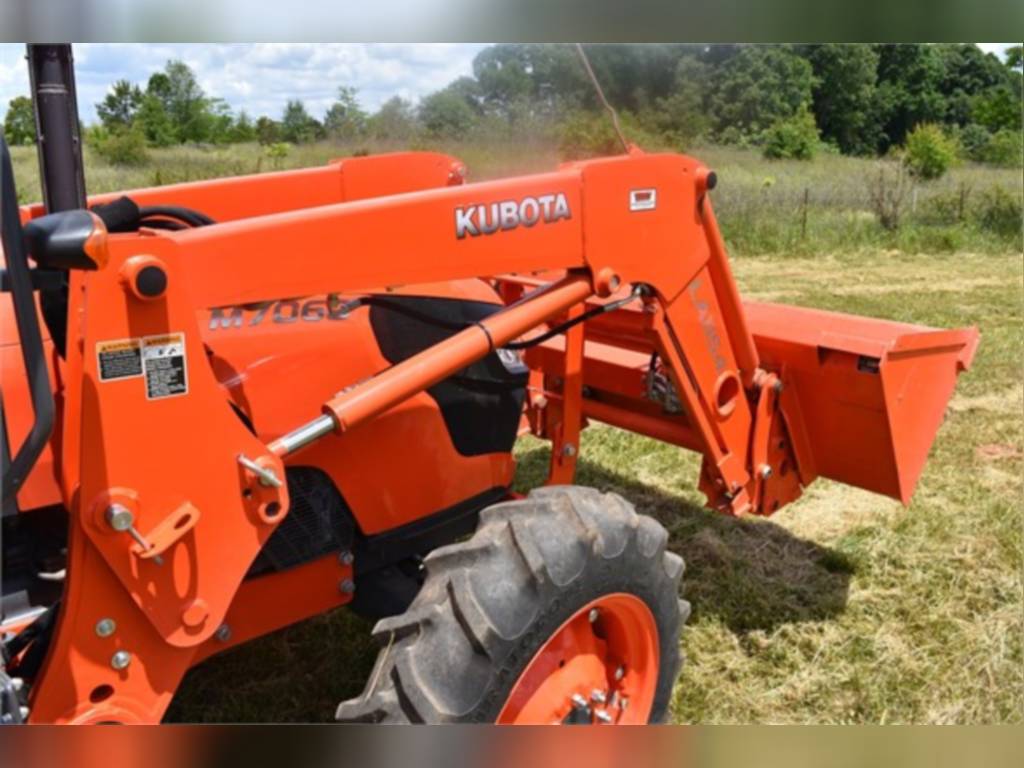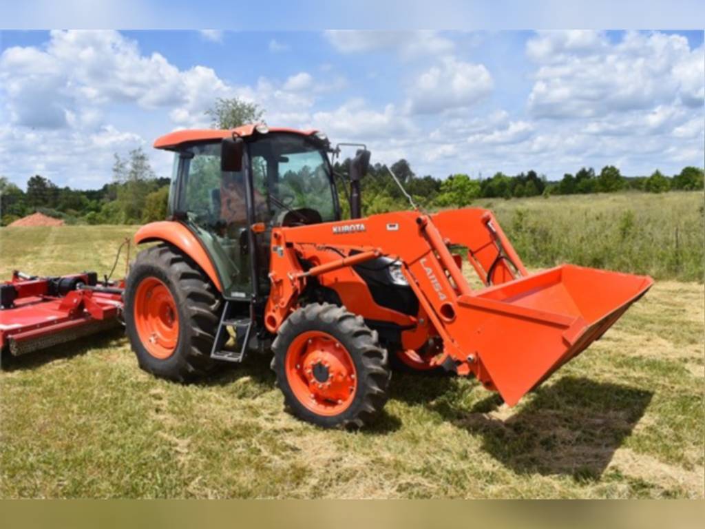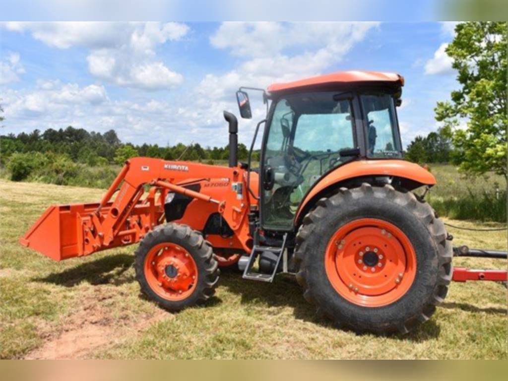 2019 KUBOTA M7060D, Farm Tractor, Enclosed Cab, 85 hours, Air Conditioner, Heater, Kubota LA1154 Front Loader Attachment, 72″ Wide General Purpose Loader Bucket, Manual Coupler, Manual Transmission, 3-Point Hitch, 540 rpm PTO (6 splines), Swinging Drawbar, 1 Rear Remote Hydraulic Circuits, 2 Mid Mount Remote Hydraulic Circuits, Rear Weights, 9.5-24 Front Tires, 16.9-30 Rear Tires , New 2310 BUSH HOG /10 feet wide.