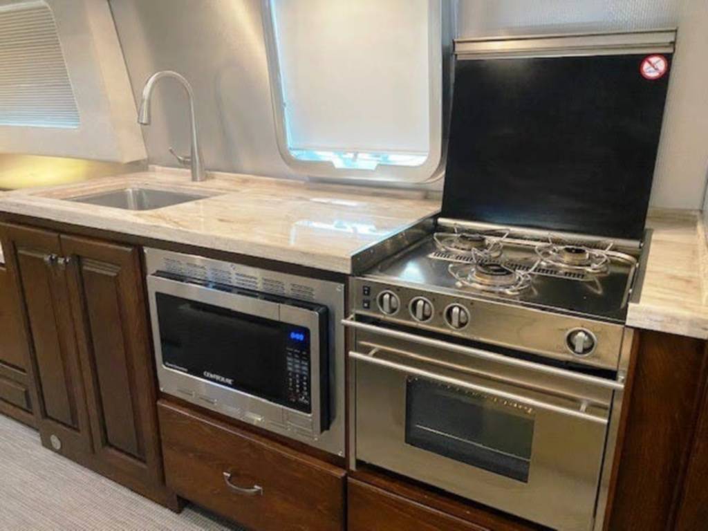2020 Airstream Classic, 33FBQ, If you’re in the market for a Travel Trailer, this 2020 Airstream Classic 33FB could be what you’re looking for. This Classic Travel Trailer comfortably sleeps 4. 1 sofa bed(s) and 1 queen bed helps your family enjoy nighttime dream adventures too. And a master bedroom conveniently located in the Front. RV Living in the Classic Travel Trailer has never felt more like home, with convenient amenities like a Center kitchen with Bench Seats, Center living area and Rear bathroom. It doesn’t stop there, this Classic 33FB Travel Trailer intensifies your RV camping experience, and features a stove with 3 oven burners, Mid-Size refrigerator, 3 TVs, a radio and more. This Classic 33FB, has a GVWR of 10000 lbs and a payload capacity of 1739 lbs. And holds 1 Black Water Holding Tank(s), 1 Fresh Water Holding Tank(s), and 1 Gray Water Holding Tanks. This Classic has 1 door(s), 1 awning(s).