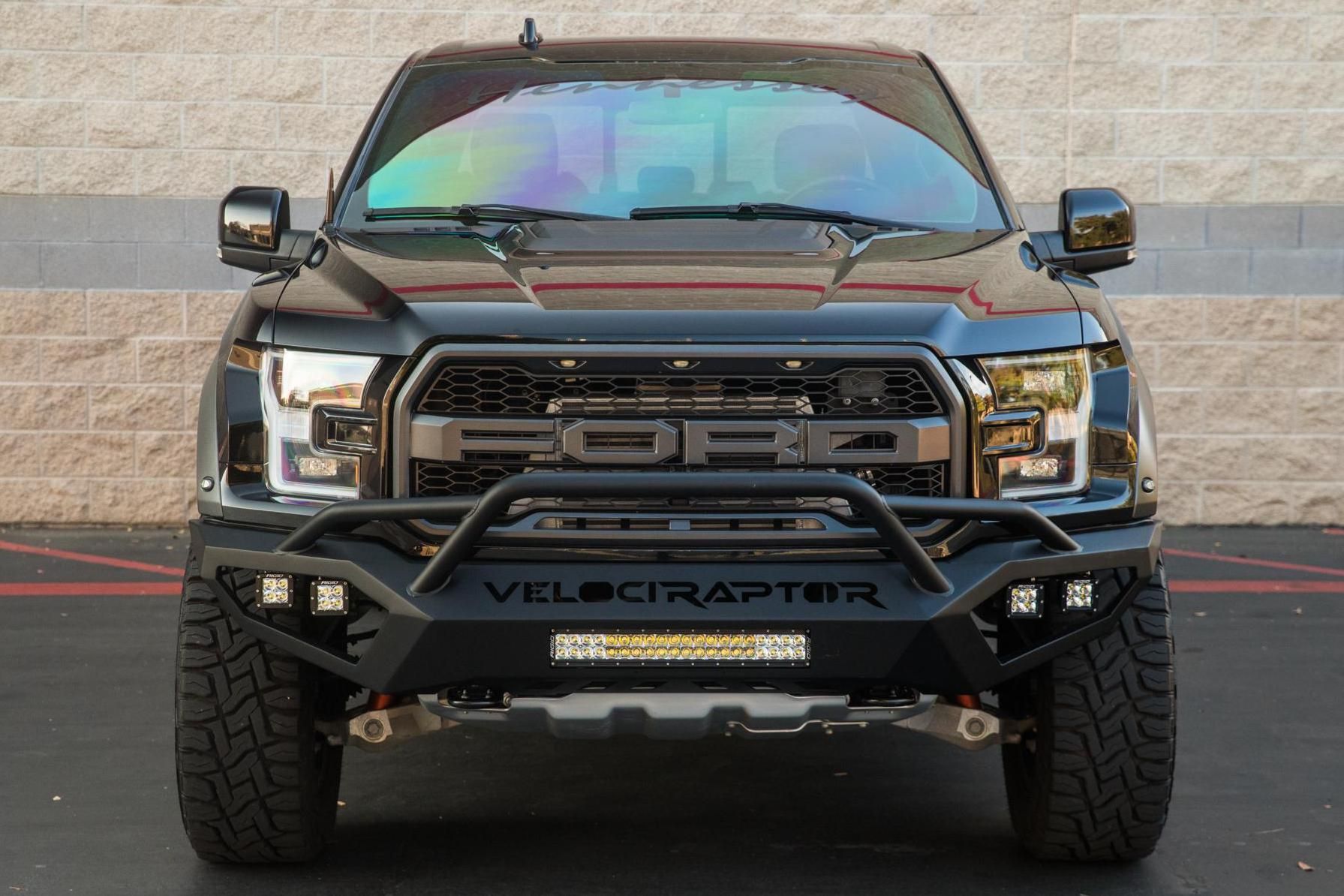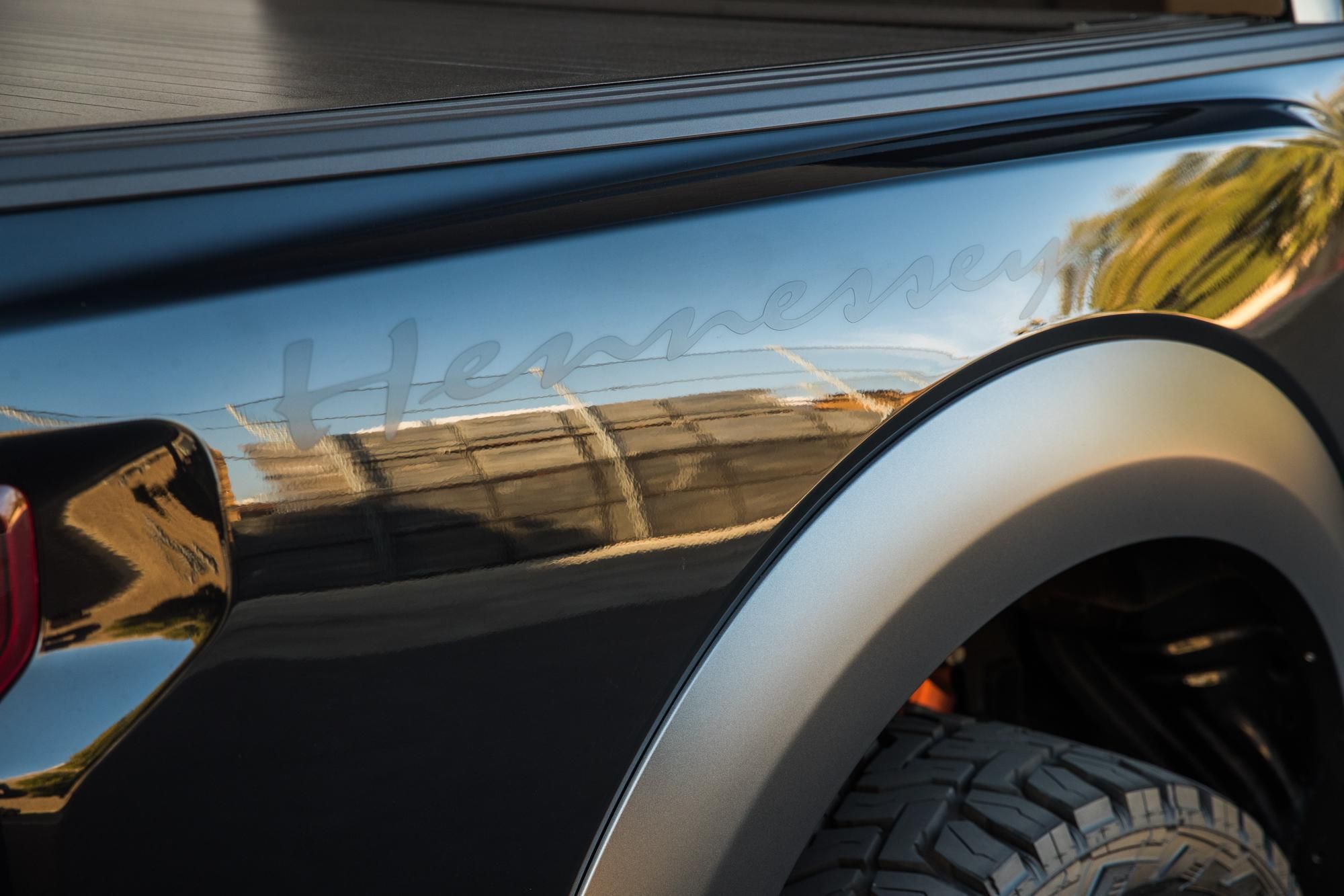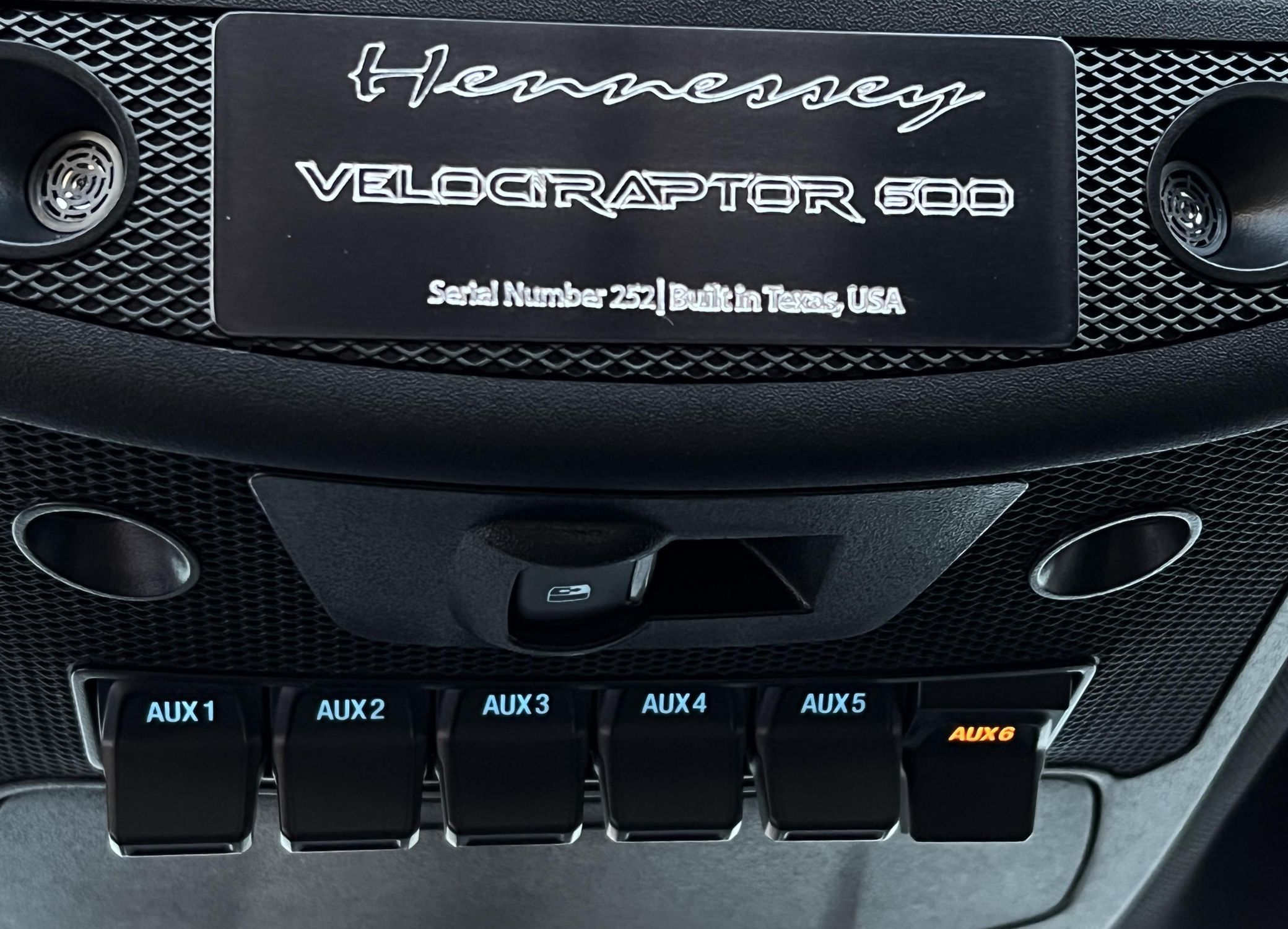 THIS… is a 2020 Ford F-150 Hennessey VelociRaptor, finished in Agate Black with a black interior. Built by Hennessey, this VelociRaptor is powered by a twin-turbocharged 3.5-liter V6 tuned to produce 600 horsepower, a 150-horsepower increase over a non-modified Raptor. It also features a 3-inch suspension lift, 20-inch Hennessey 10-spoke wheels, Brembo front brakes, an array of model-specific exterior badges, and embroidered headrests, among other modifications made by the Texas-based tuner. Hennessey builds a small handful of VelociRaptors annually; this is number 252, according to a plaque in the engine bay. Factory equipment includes the Luxury Equipment Group 802A (Torsen differential, heated and ventilated front seats, a heated steering wheel, a power-sliding rear window, adaptive cruise control, a Bang & Olufsen sound system, and more), a Fox suspension system, skid plates, a twin-panel sunroof, and more as detailed below. Designed to speed across the desert, Baja racing-style, the second-generation Raptor made its debut for the 2017 model year with an impressive list of off-road hardware. It also weighed about 500 pounds less than its predecessor thanks in part to the widespread use of aluminum. Power comes from a twin-turbocharged 3.5-liter EcoBoost V6, which produces 600 horsepower and and 622 lb-ft of torque. Output is sent to the rear or all four wheels via a 10-speed automatic transmission.