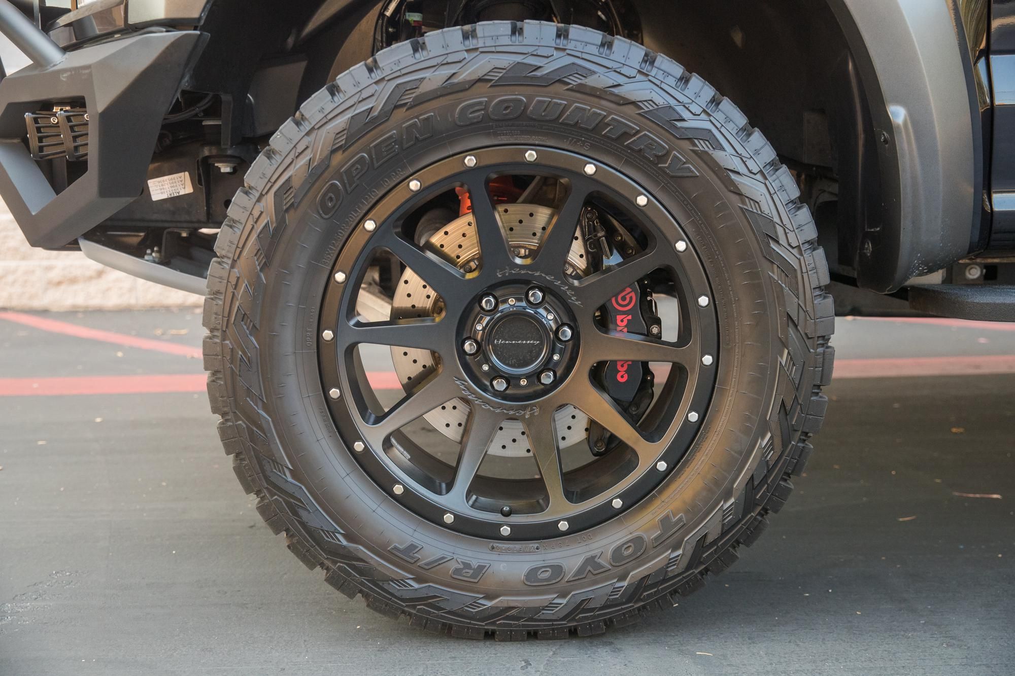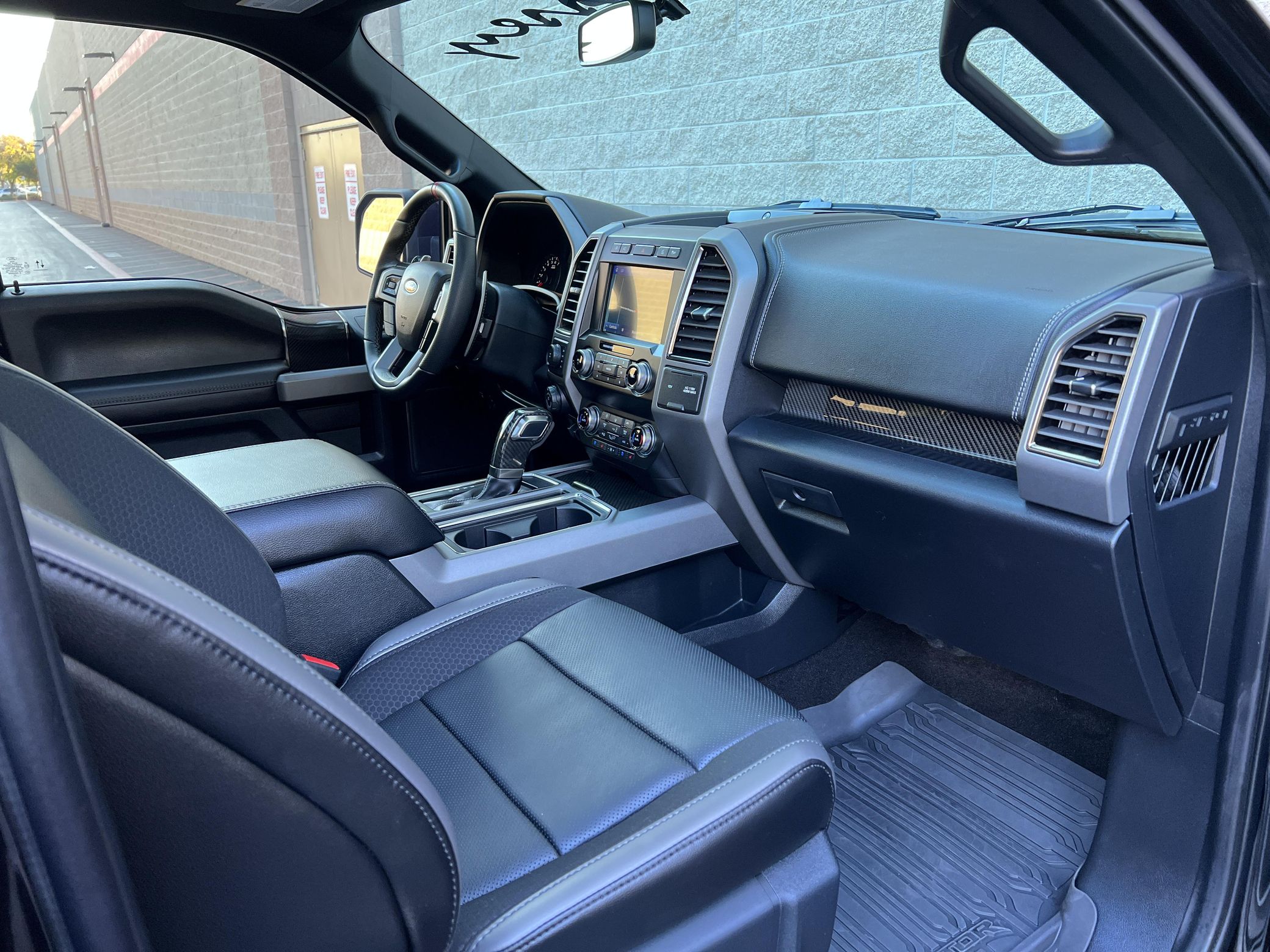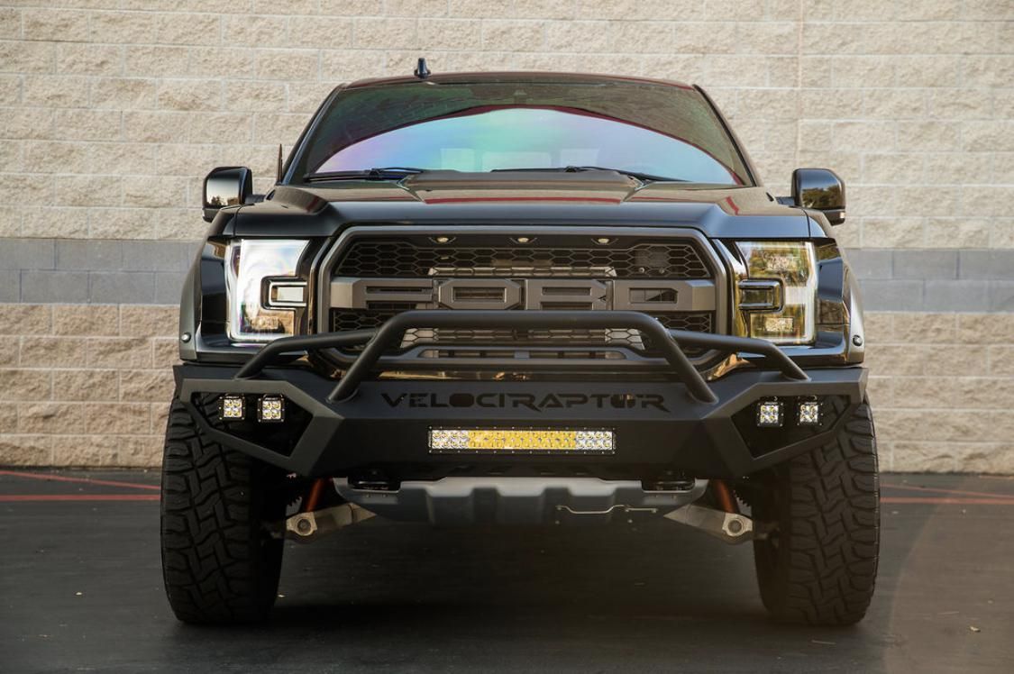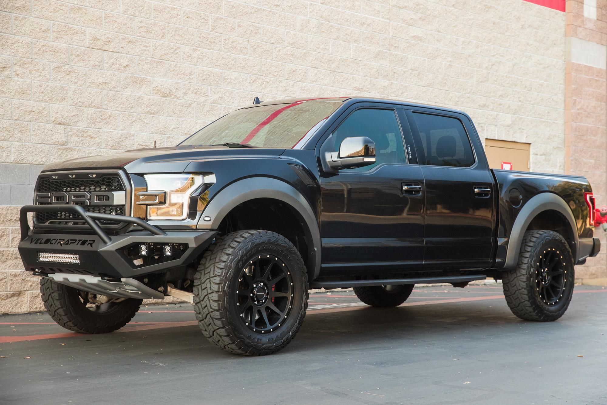 THIS… is a 2020 Ford F-150 Hennessey VelociRaptor, finished in Agate Black with a black interior. Built by Hennessey, this VelociRaptor is powered by a twin-turbocharged 3.5-liter V6 tuned to produce 600 horsepower, a 150-horsepower increase over a non-modified Raptor. It also features a 3-inch suspension lift, 20-inch Hennessey 10-spoke wheels, Brembo front brakes, an array of model-specific exterior badges, and embroidered headrests, among other modifications made by the Texas-based tuner. Hennessey builds a small handful of VelociRaptors annually; this is number 252, according to a plaque in the engine bay. Factory equipment includes the Luxury Equipment Group 802A (Torsen differential, heated and ventilated front seats, a heated steering wheel, a power-sliding rear window, adaptive cruise control, a Bang & Olufsen sound system, and more), a Fox suspension system, skid plates, a twin-panel sunroof, and more as detailed below. Designed to speed across the desert, Baja racing-style, the second-generation Raptor made its debut for the 2017 model year with an impressive list of off-road hardware. It also weighed about 500 pounds less than its predecessor thanks in part to the widespread use of aluminum. Power comes from a twin-turbocharged 3.5-liter EcoBoost V6, which produces 600 horsepower and and 622 lb-ft of torque. Output is sent to the rear or all four wheels via a 10-speed automatic transmission.