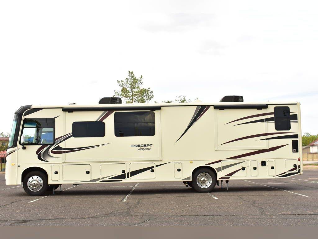 2020 Jayco Precept 36A, 2020 Jayco Precept 36A 38′ Class A Motorhome. Ford V10 6.8L Gasoline Engine, 3 Slide Outs, 22′ Electric Awning with Lights, Sleeps 10, Triple A/C Units, Automatic Leveling Jacks with Bluetooth Enabled, Bunk Model, 2 Full Bathrooms.
