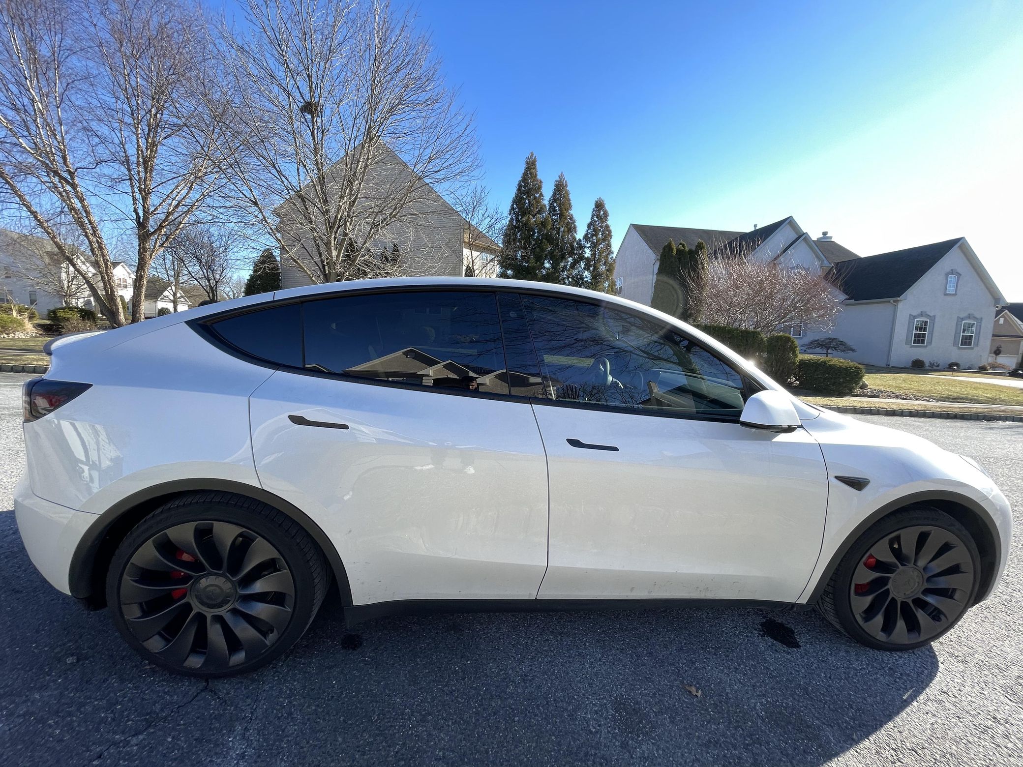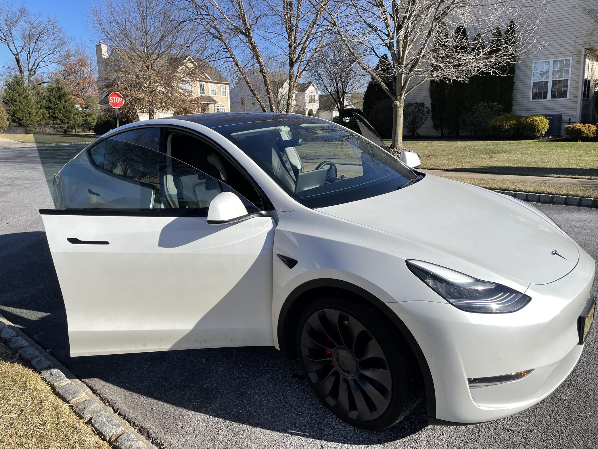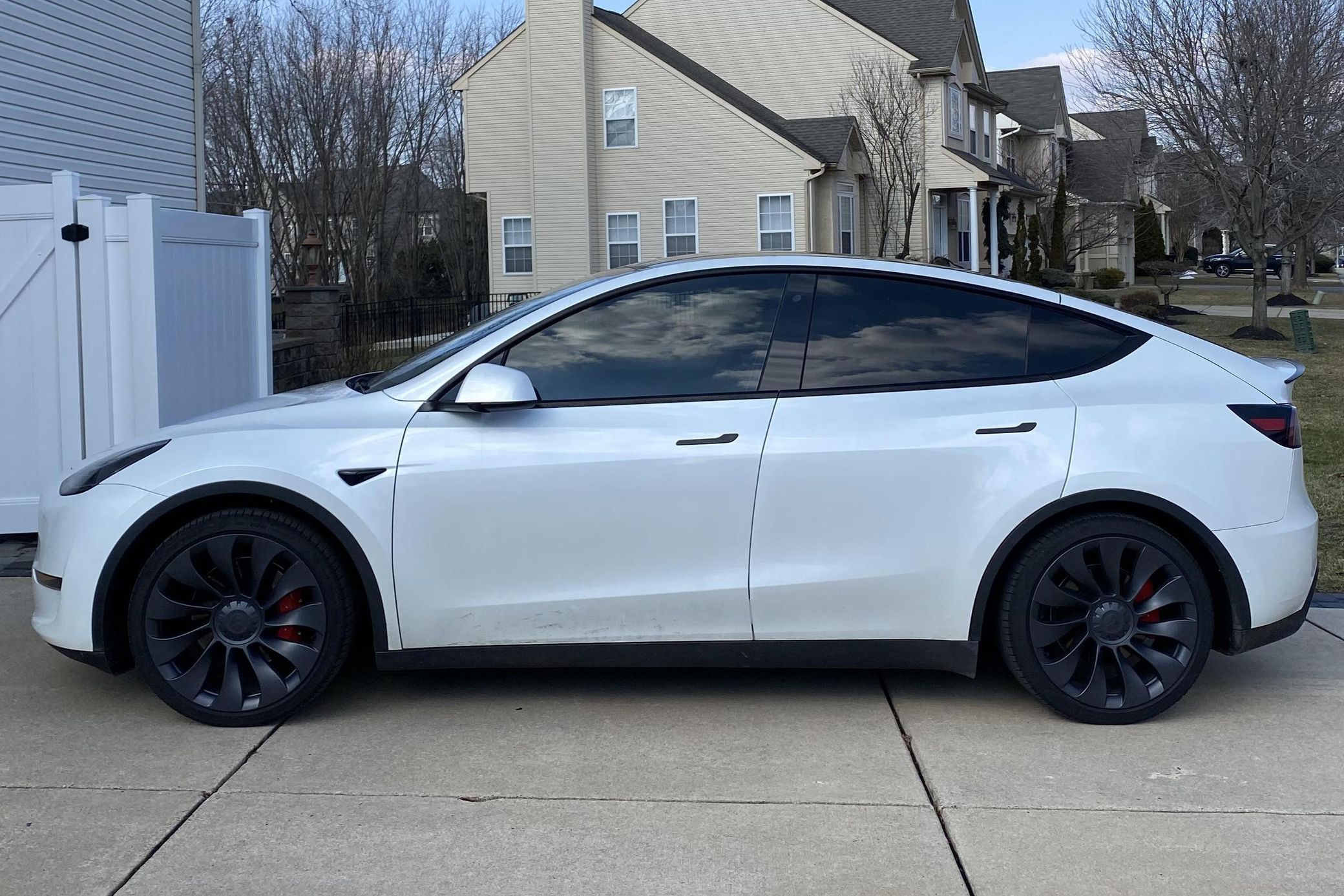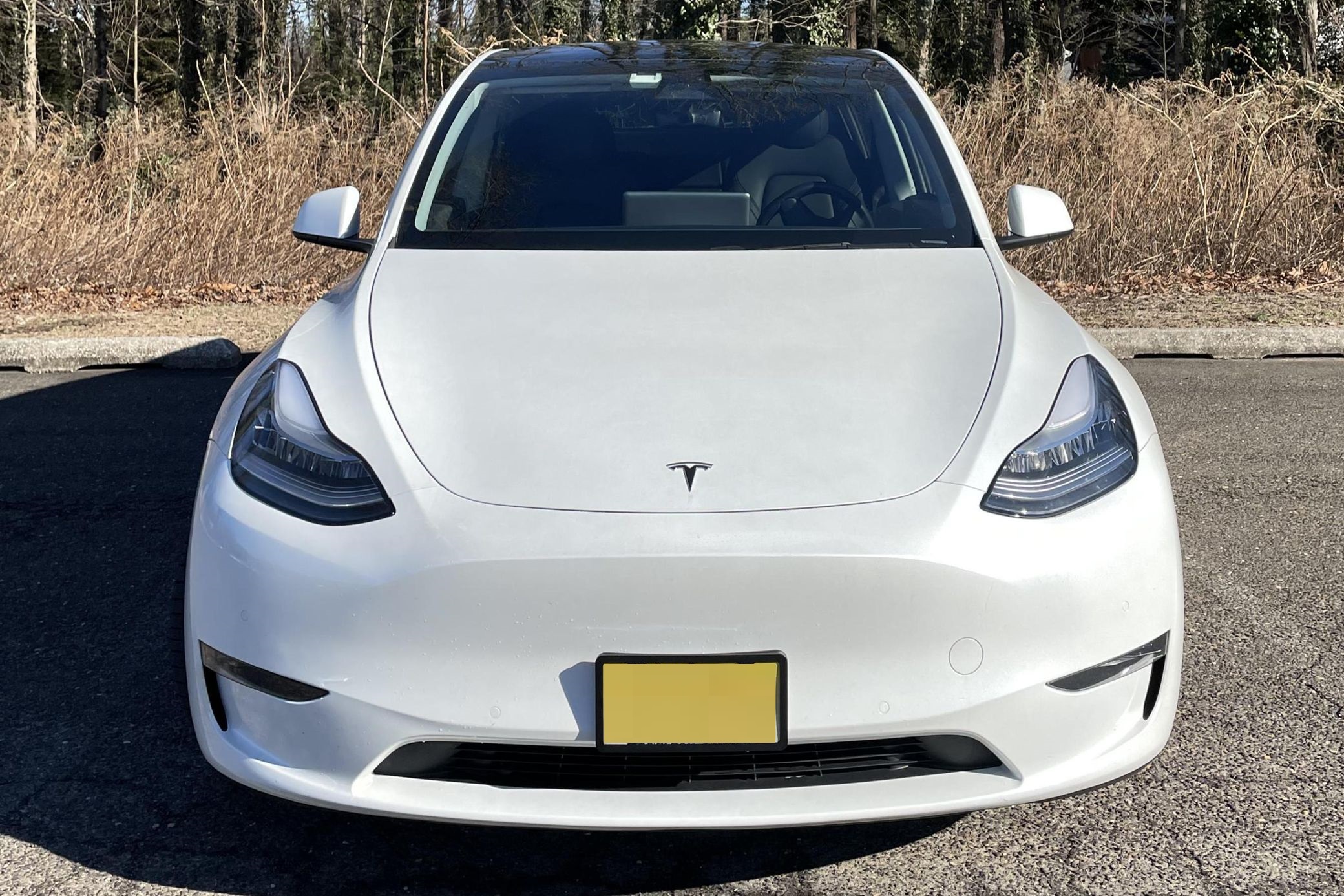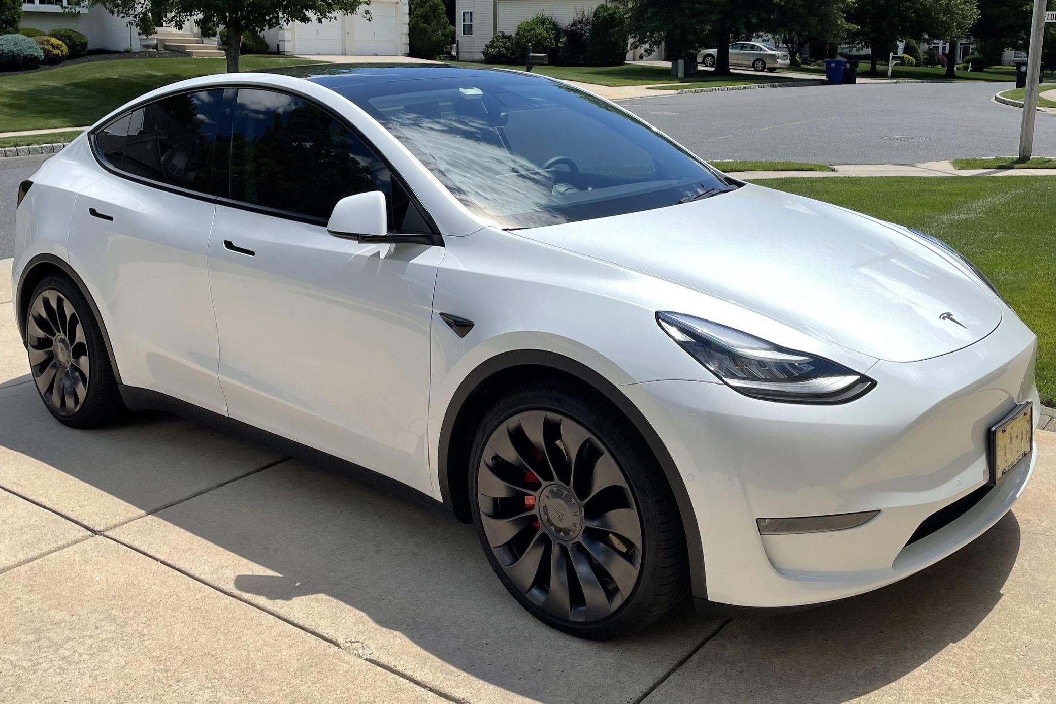 THIS… is a 2020 Tesla Model Y Performance, finished in Pearl White with a black interior. The attached Carfax history report shows no mileage discrepancies and confirms that this is a one-owner car. Factory equipment includes Autopilot, 21-inch Überturbine wheels, Performance brakes, model-specific lowered suspension, LED headlights and taillights, a panoramic sunroof, premium interior upholstery, power-adjustable front seats, heated front and rear seats, and more as listed below. Modifications reported by the seller are limited to aftermarket carbon-fiber Tesla emblems, tinted windows, and a vinyl wrap on the center console. Introduced in 2020, the Model Y was Tesla’s second SUV offering. Although it’s the smaller sibling of the Model X SUV, it’s actually based on the Model 3 sedan platform and features a similar drivetrain and equipment. At launch, the Model Y was celebrated as a premium EV with a usable range and respectable performance, all at a reasonably attainable price. As the range-topping variant of the range, the Model Y Performance features a lowered suspension, and beefier brakes with red brake calipers. The fastest version of the Model Y can accelerate from rest to 60 mph in just 3.5 seconds, while topping out at 155 mph. Power comes from dual electric motors, which produce 456 horsepower and 497 lb-ft of torque. Output is sent to all four wheels, and the Performance model comes with a 291-mile EPA-estimated range, when fitted with the 21-inch Überturbine wheels as this Model Y does.