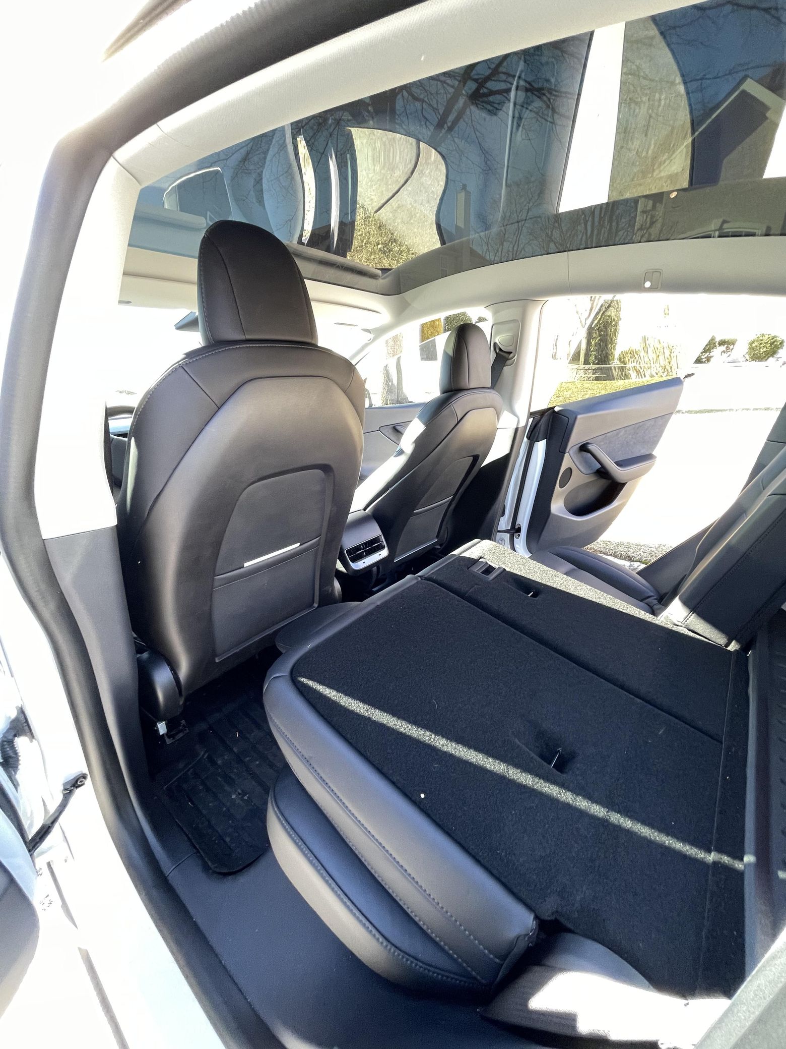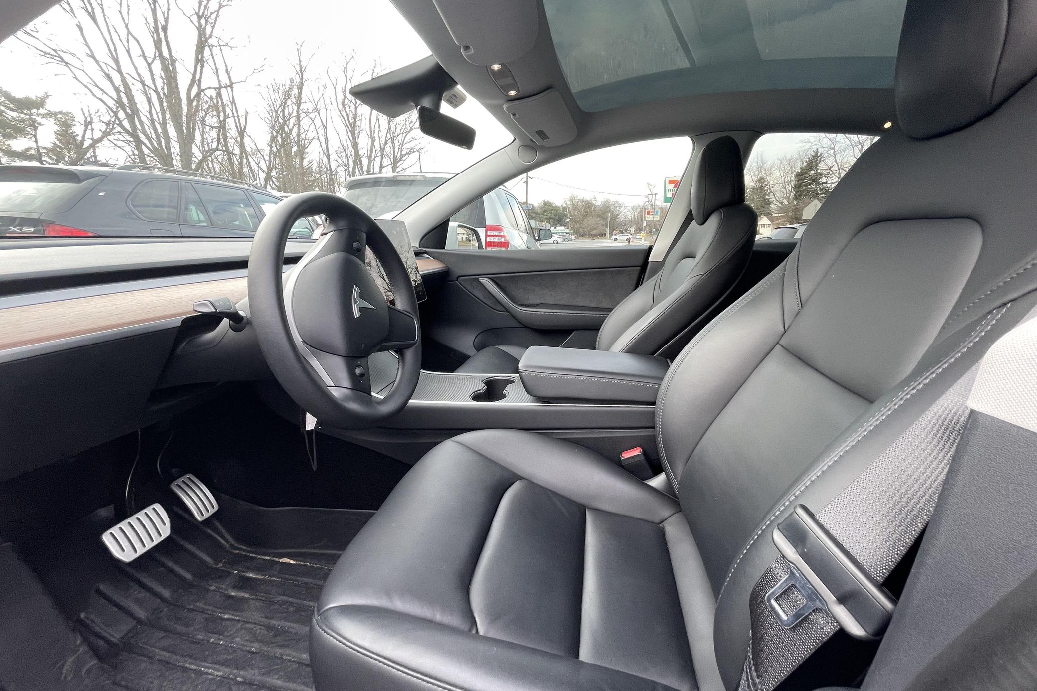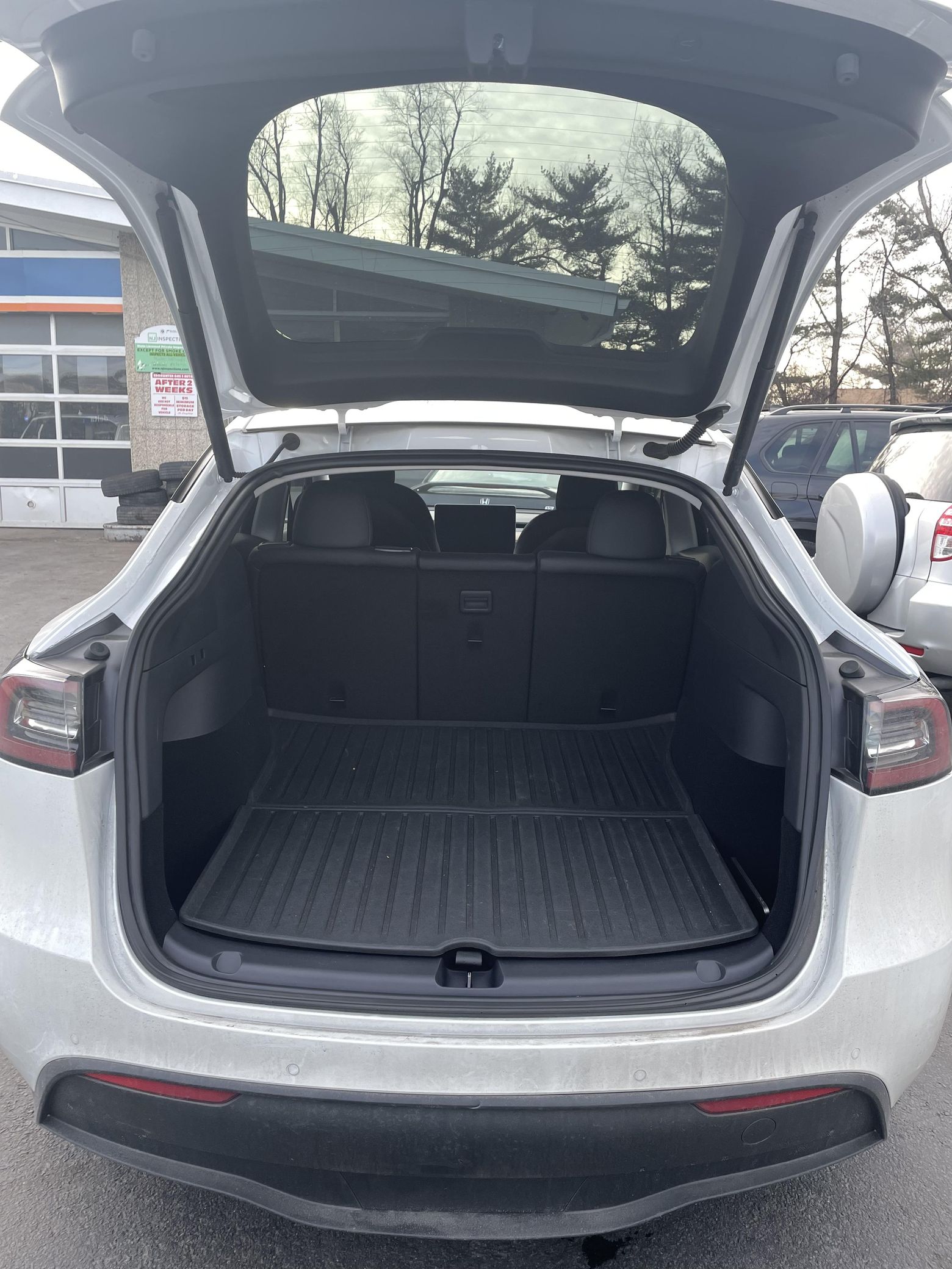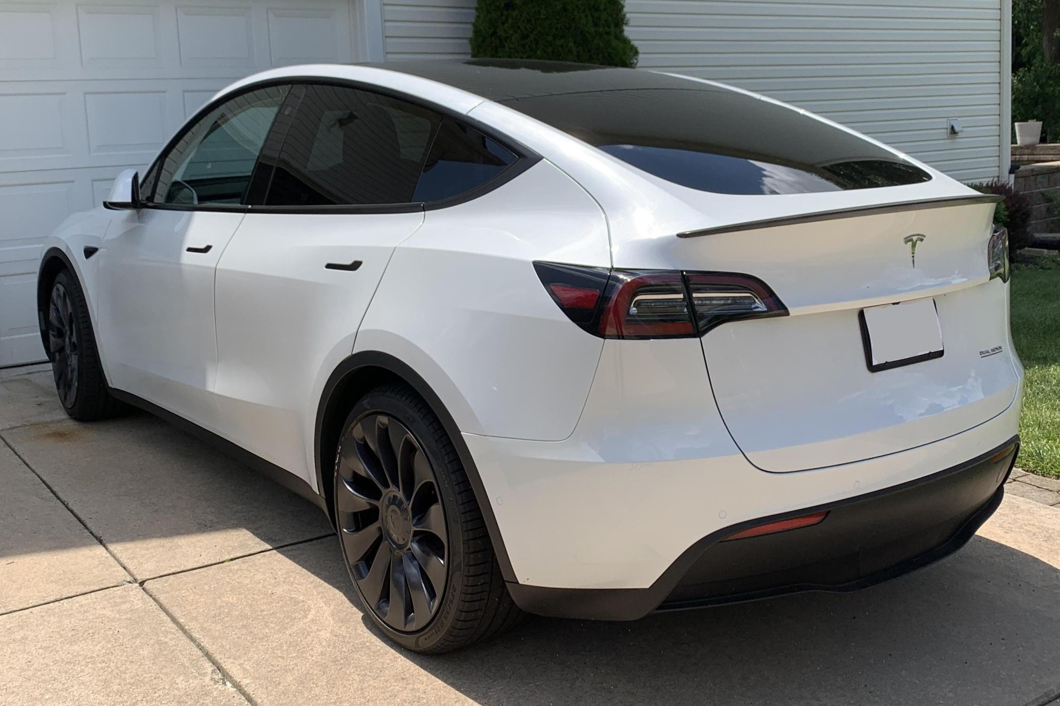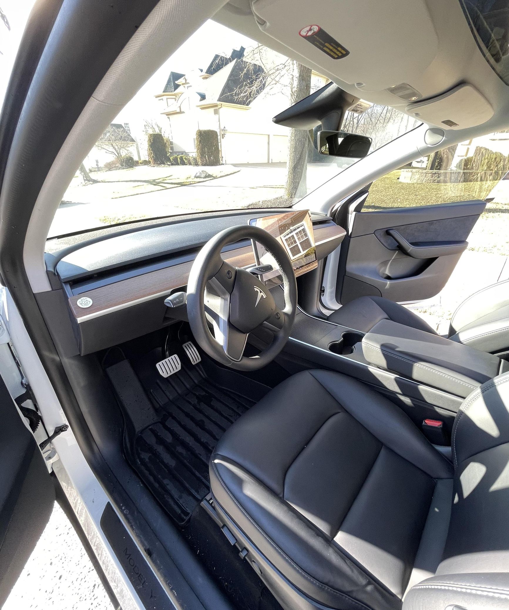 THIS… is a 2020 Tesla Model Y Performance, finished in Pearl White with a black interior. The attached Carfax history report shows no mileage discrepancies and confirms that this is a one-owner car. Factory equipment includes Autopilot, 21-inch Überturbine wheels, Performance brakes, model-specific lowered suspension, LED headlights and taillights, a panoramic sunroof, premium interior upholstery, power-adjustable front seats, heated front and rear seats, and more as listed below. Modifications reported by the seller are limited to aftermarket carbon-fiber Tesla emblems, tinted windows, and a vinyl wrap on the center console. Introduced in 2020, the Model Y was Tesla’s second SUV offering. Although it’s the smaller sibling of the Model X SUV, it’s actually based on the Model 3 sedan platform and features a similar drivetrain and equipment. At launch, the Model Y was celebrated as a premium EV with a usable range and respectable performance, all at a reasonably attainable price. As the range-topping variant of the range, the Model Y Performance features a lowered suspension, and beefier brakes with red brake calipers. The fastest version of the Model Y can accelerate from rest to 60 mph in just 3.5 seconds, while topping out at 155 mph. Power comes from dual electric motors, which produce 456 horsepower and 497 lb-ft of torque. Output is sent to all four wheels, and the Performance model comes with a 291-mile EPA-estimated range, when fitted with the 21-inch Überturbine wheels as this Model Y does.