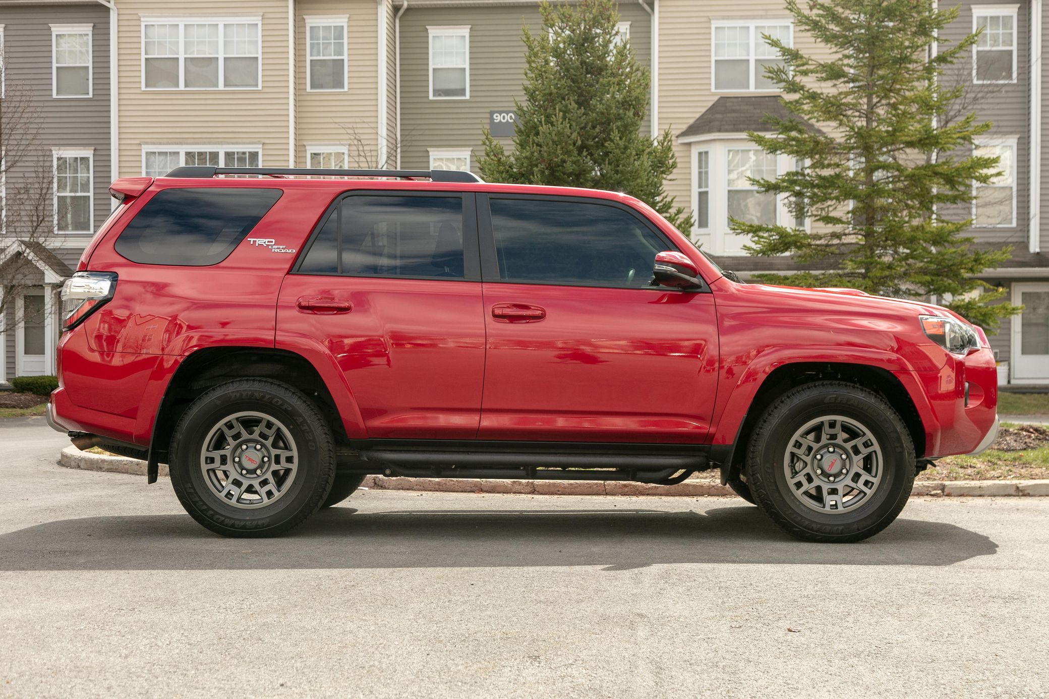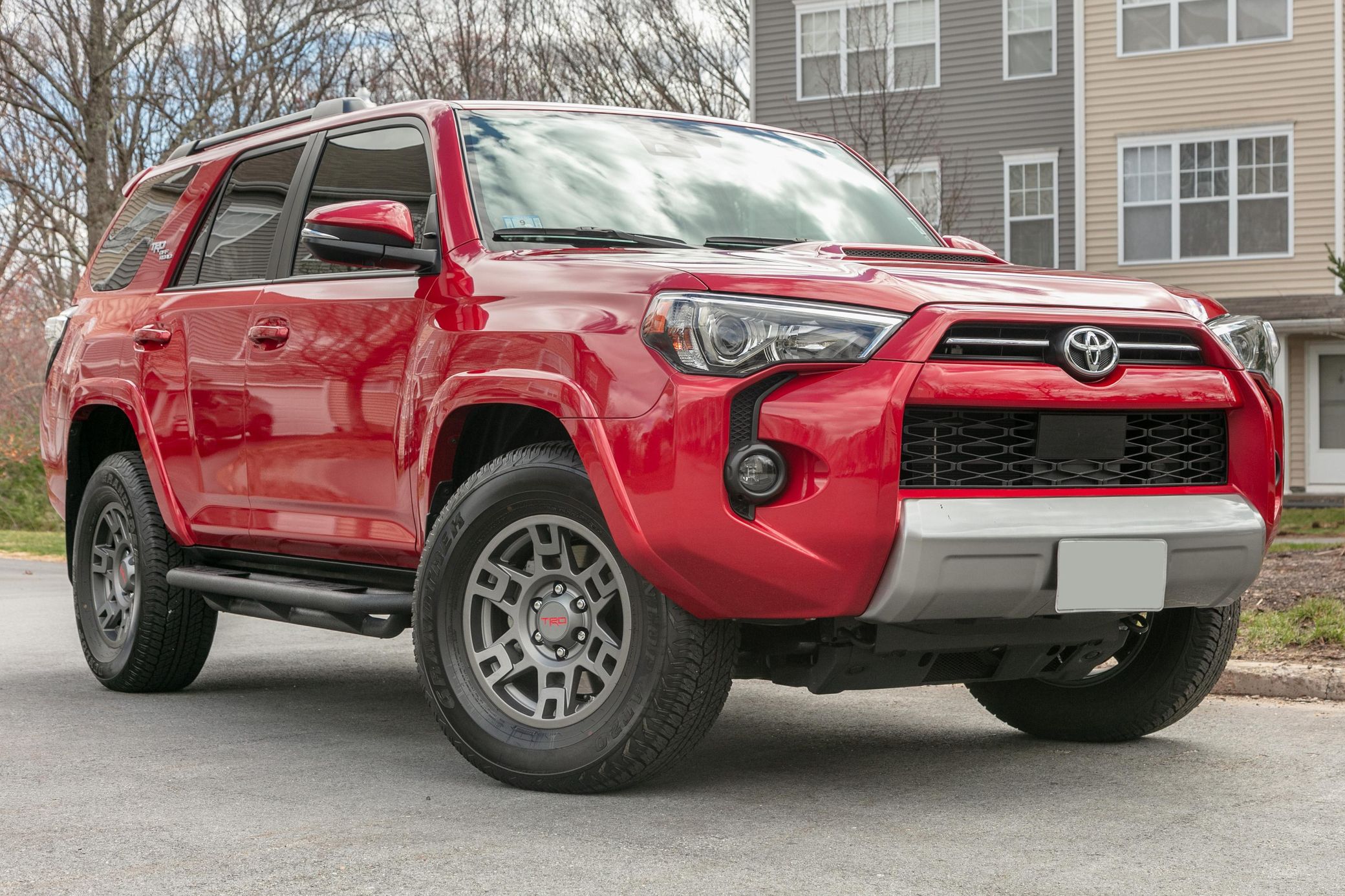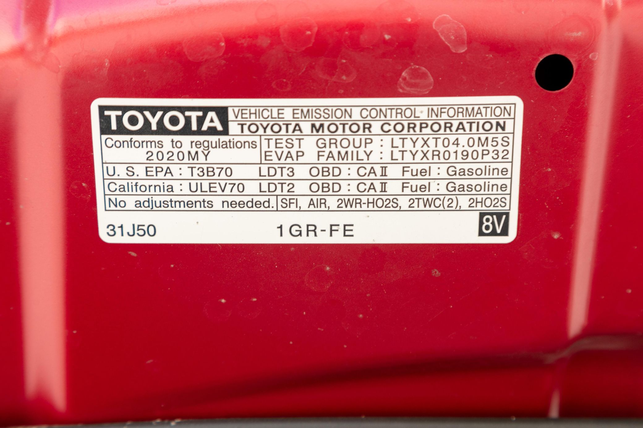 THIS… is a 2020 Toyota 4Runner TRD Off-Road, finished in Barcelona Red Metallic with a black interior. No accidents. Factory equipment on this 4Runner includes the Off-Road Package, an 8-inch touchscreen, a Kinetic Dynamic Suspension System, a locking rear differential, and heated front seats trimmed in SofTex, among other features detailed below. The seller reports that this 4Runner has been modified with LED headlights and DRLs, LED license plate illumination lights, and tubular side steps. Toyota introduced the 5th and current generation of the 4Runner for the 2010 model year. While many of its rivals moved to a unibody architecture, the 4Runner kept its body-on-frame layout and continued to offer exceptional off-road capacity. TRD models like this example further enhance the 4Runner’s already formidable off-road capability. Power for this 4Runner comes from a 4.0-liter V6, which produces 270 horsepower and 278 lb-ft of torque. It spins the 4 wheels via a 5-speed automatic transmission.