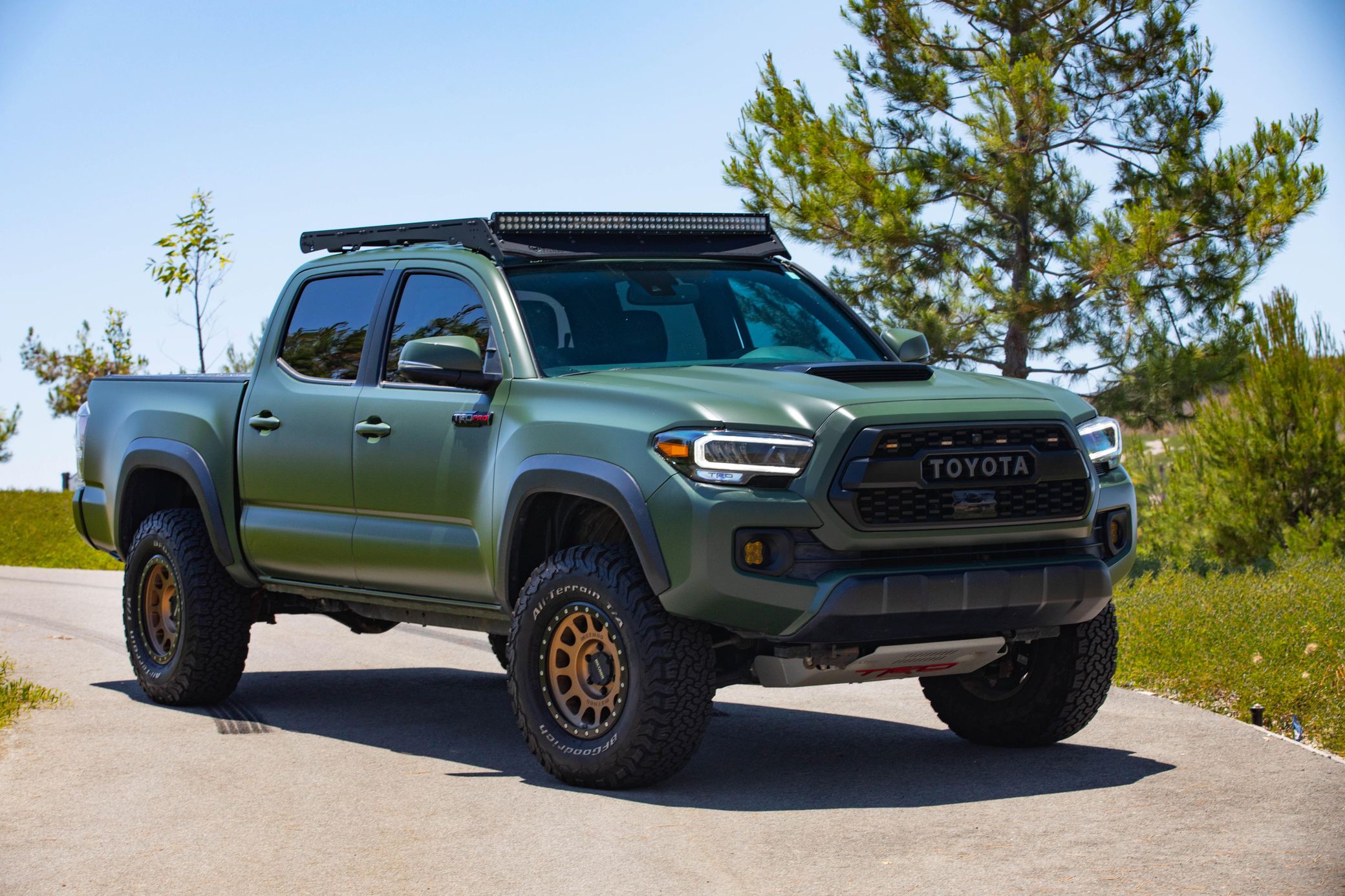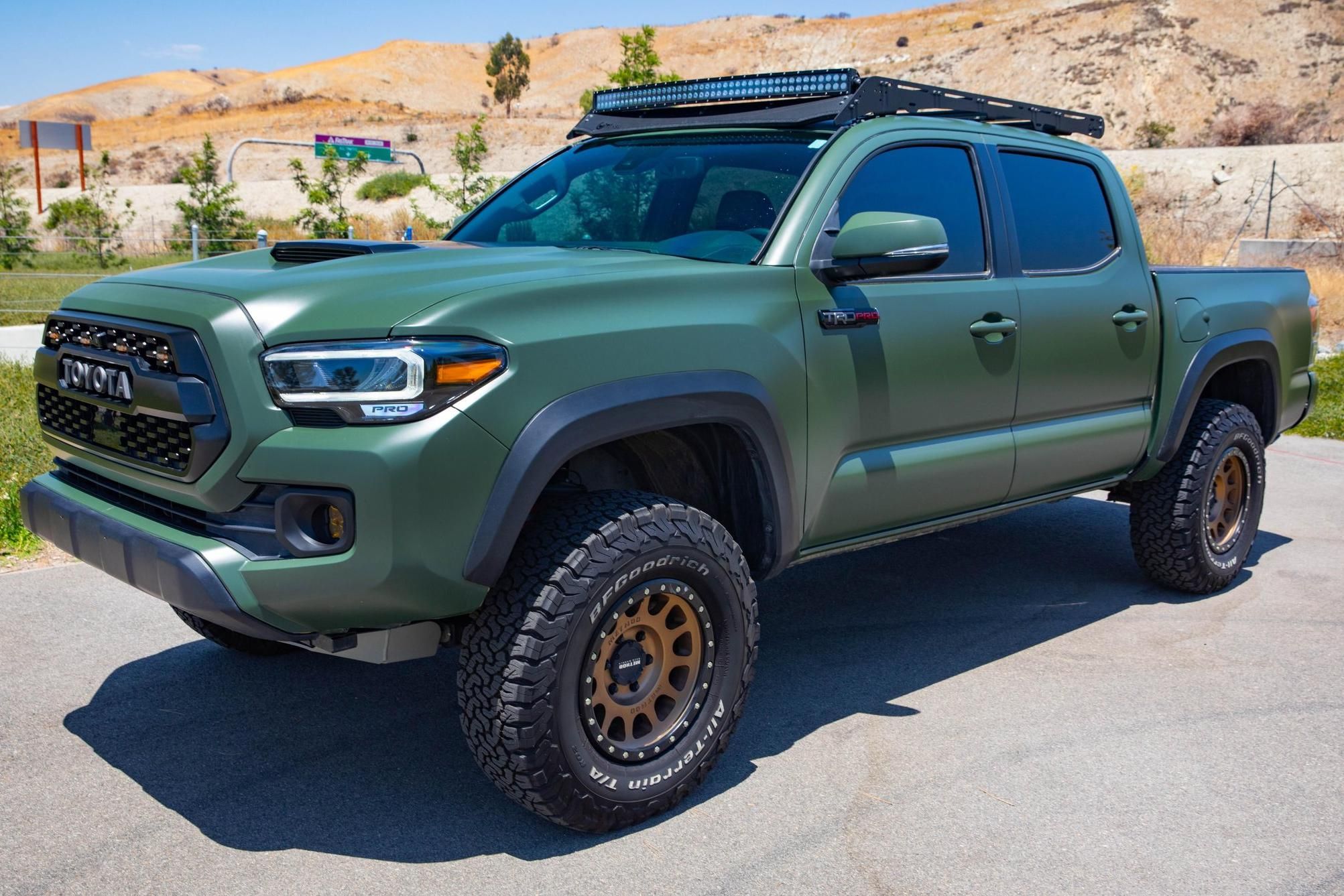 THIS… is a 2020 Toyota Tacoma Double Cab TRD Pro 4×4, finished in Army Green with a black interior.