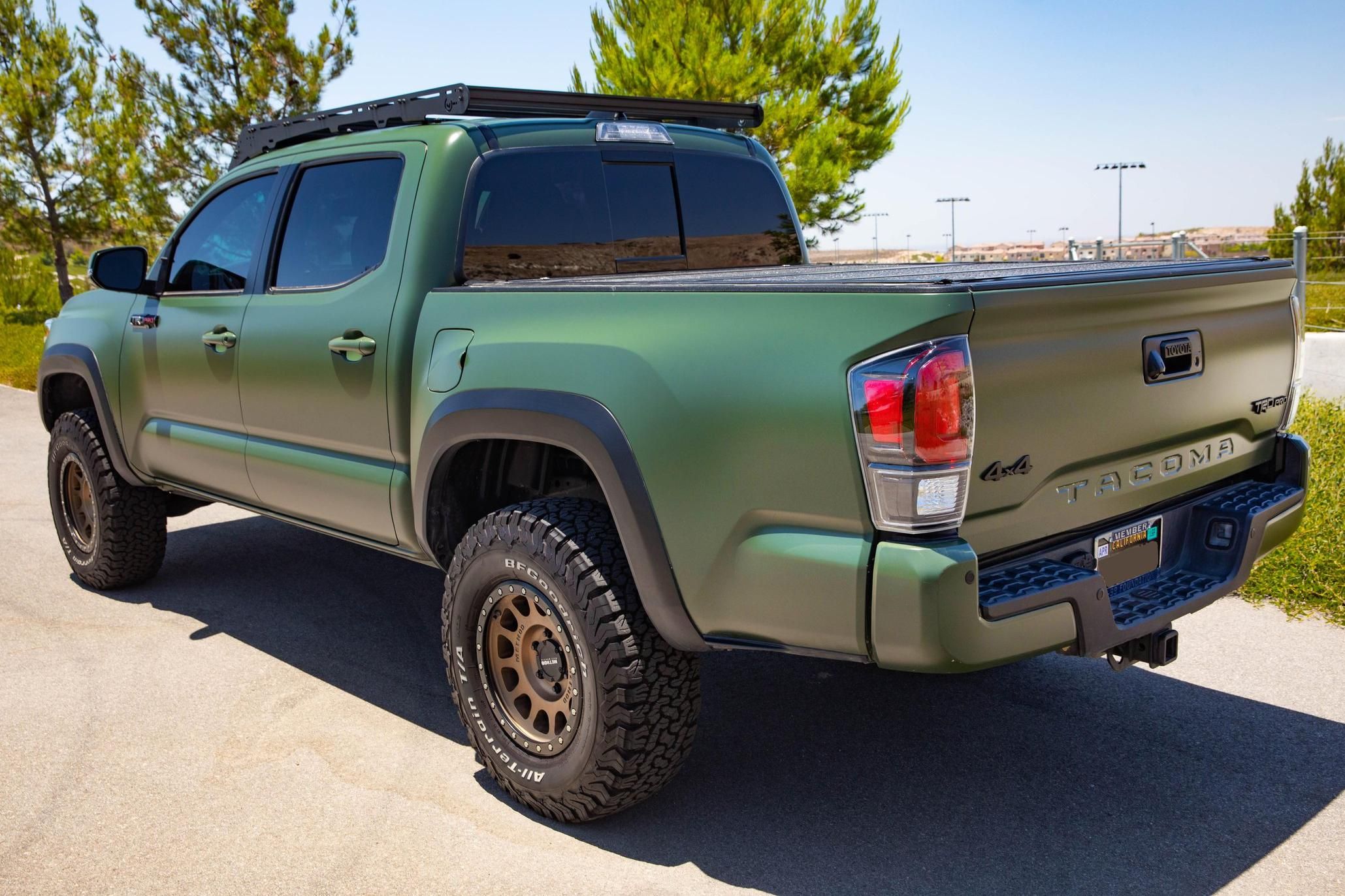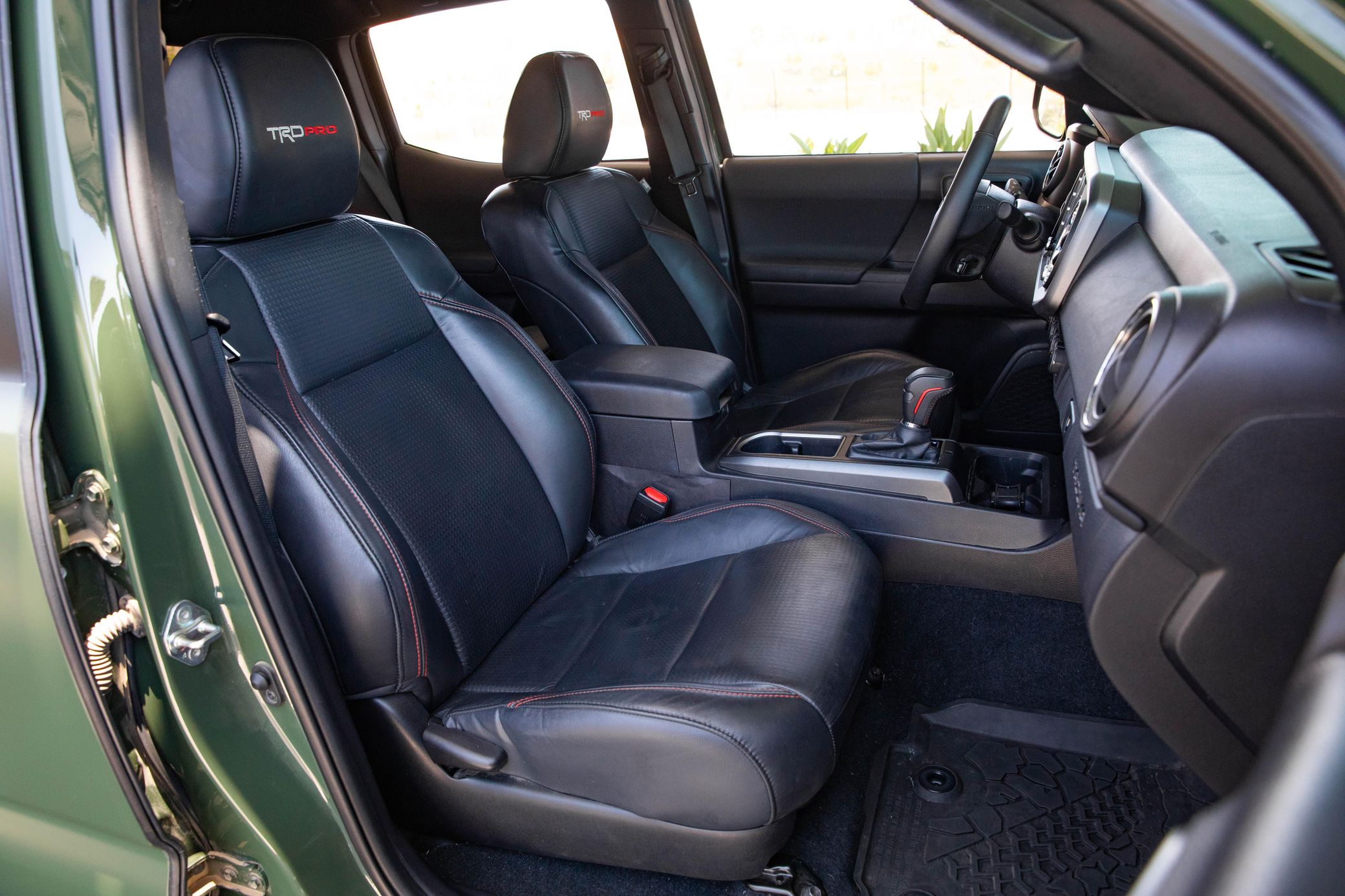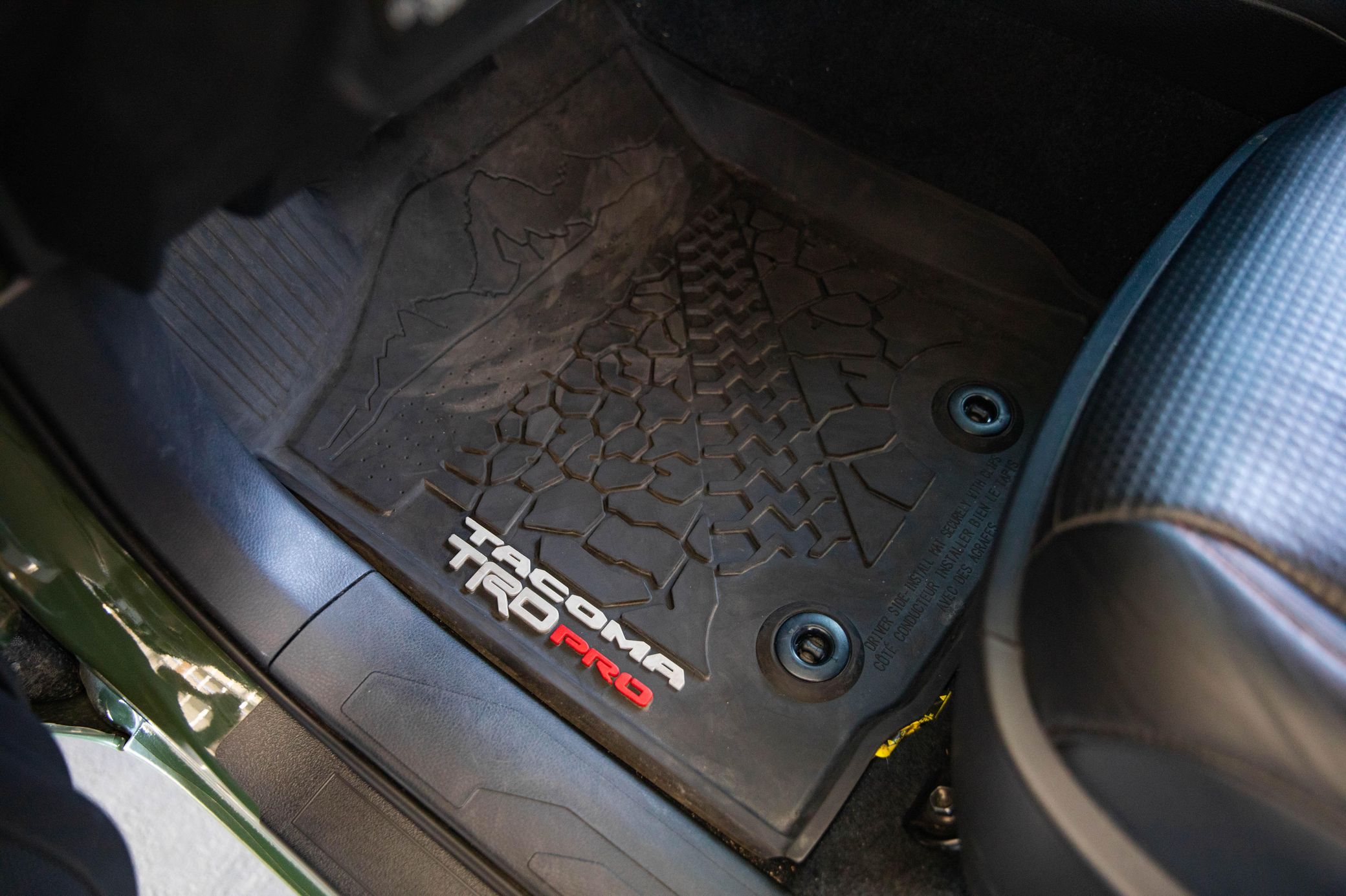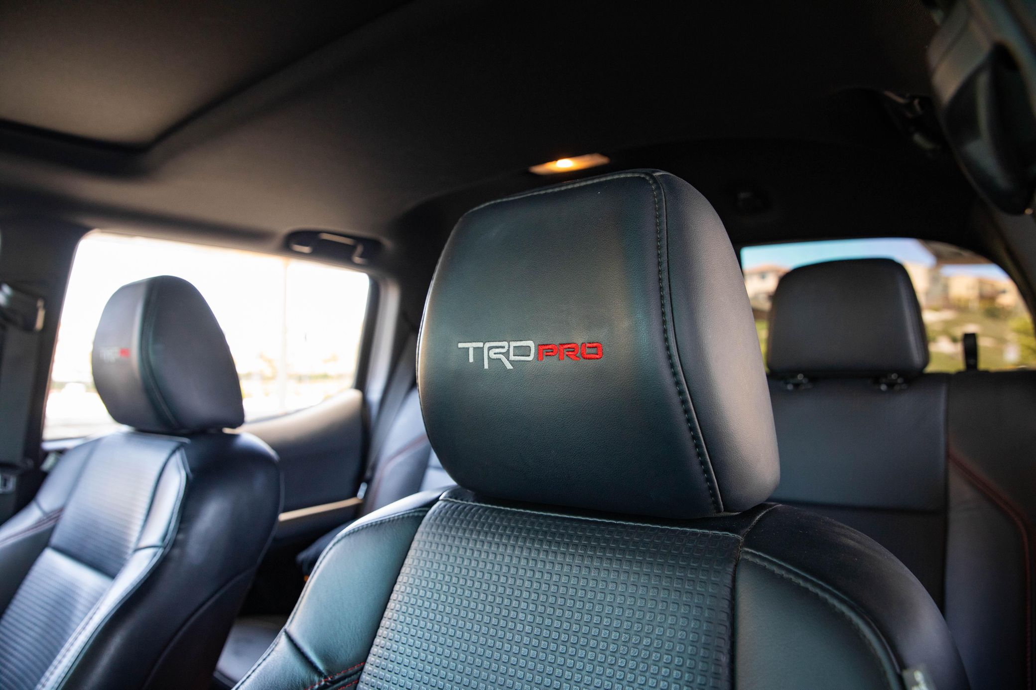 Introduced for the 2015 model year on the second generation Tacoma, the TRD Pro is the most extreme version of the Tacoma available from the factory. The third generation Tacoma TRD Pro features Fox dual-reservoir shocks, a locking rear differential, a TRD exhaust, and all-terrain tires. It also came equipped with a model-specific leather upholstery with red stitching as well as unique exterior badging.