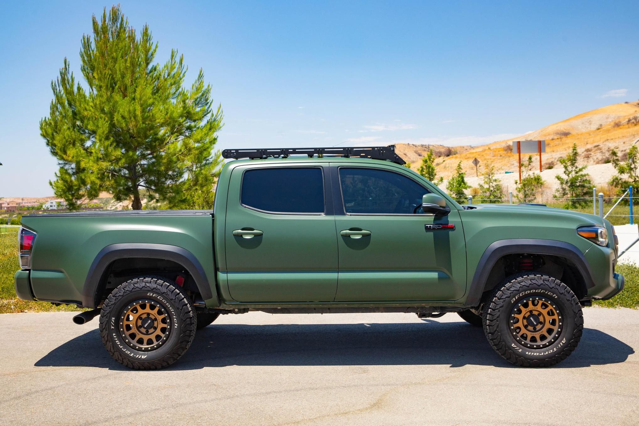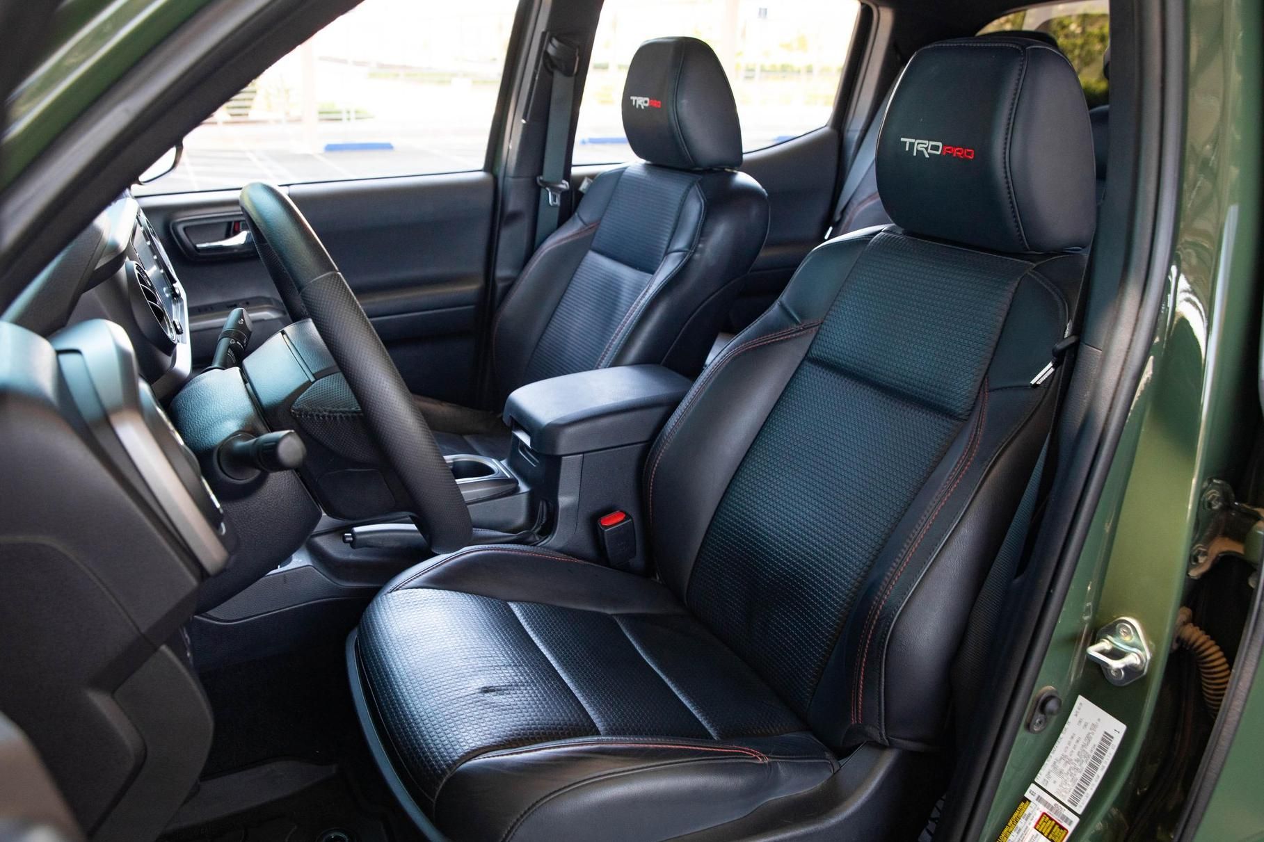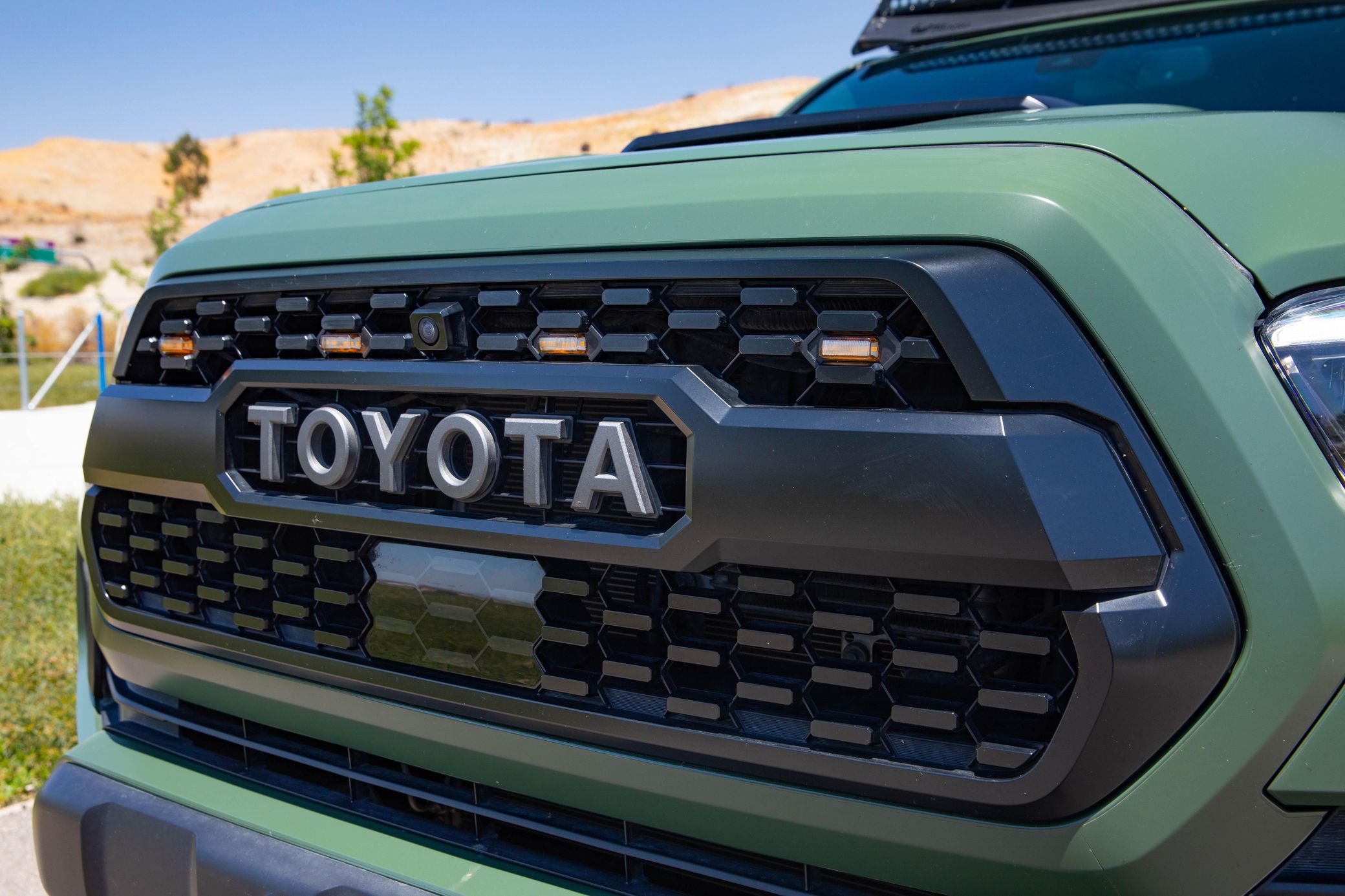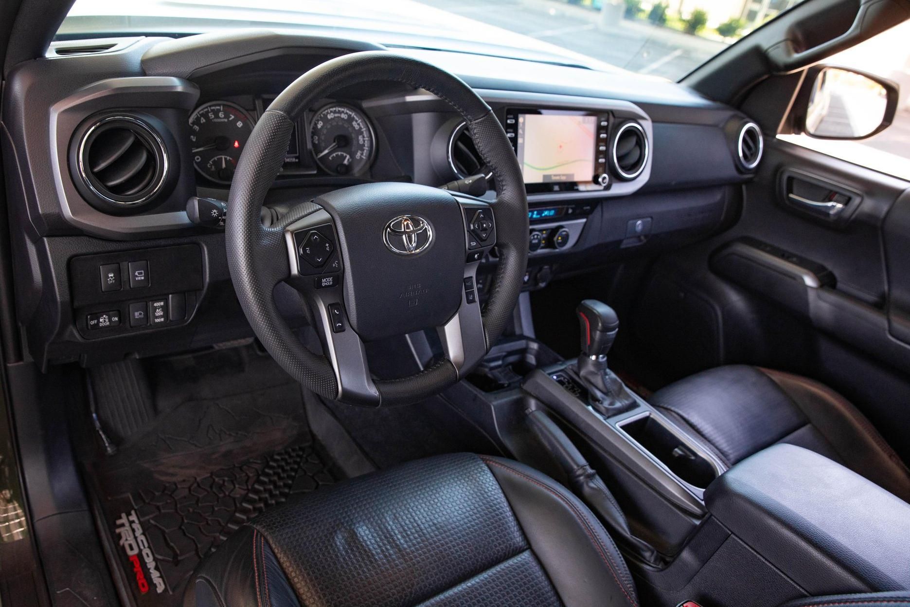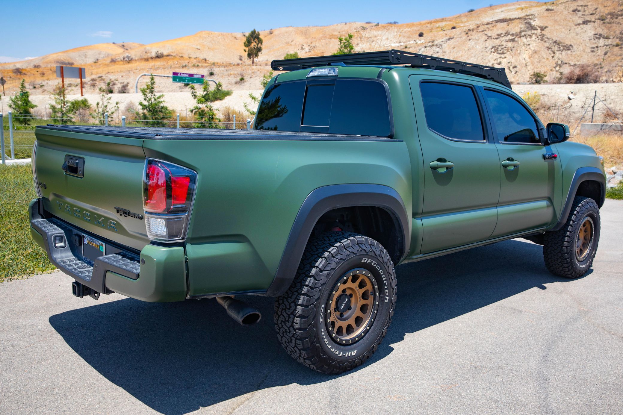 Introduced for the 2015 model year on the second generation Tacoma, the TRD Pro is the most extreme version of the Tacoma available from the factory. The third generation Tacoma TRD Pro features Fox dual-reservoir shocks, a locking rear differential, a TRD exhaust, and all-terrain tires. It also came equipped with a model-specific leather upholstery with red stitching as well as unique exterior badging.