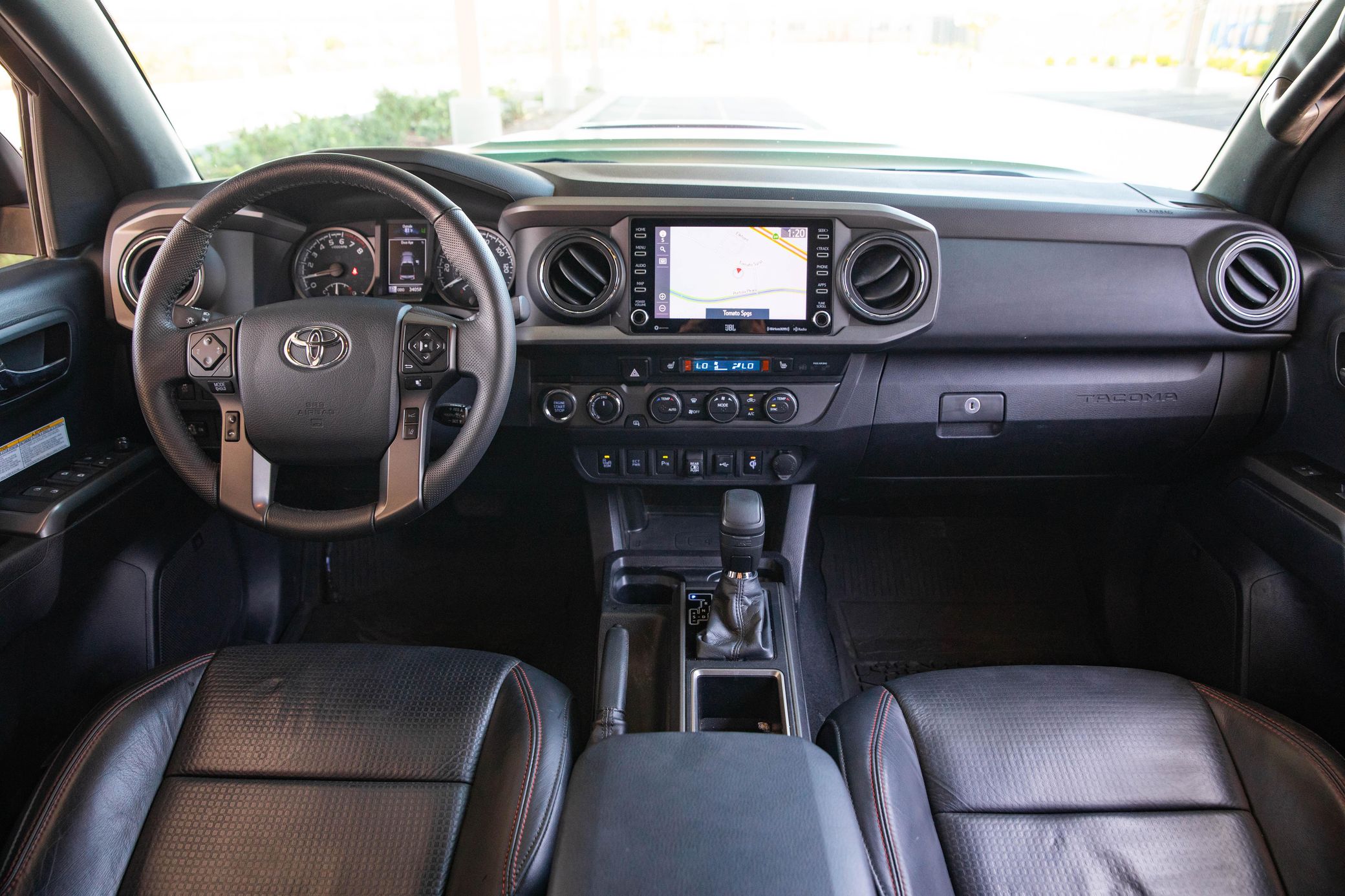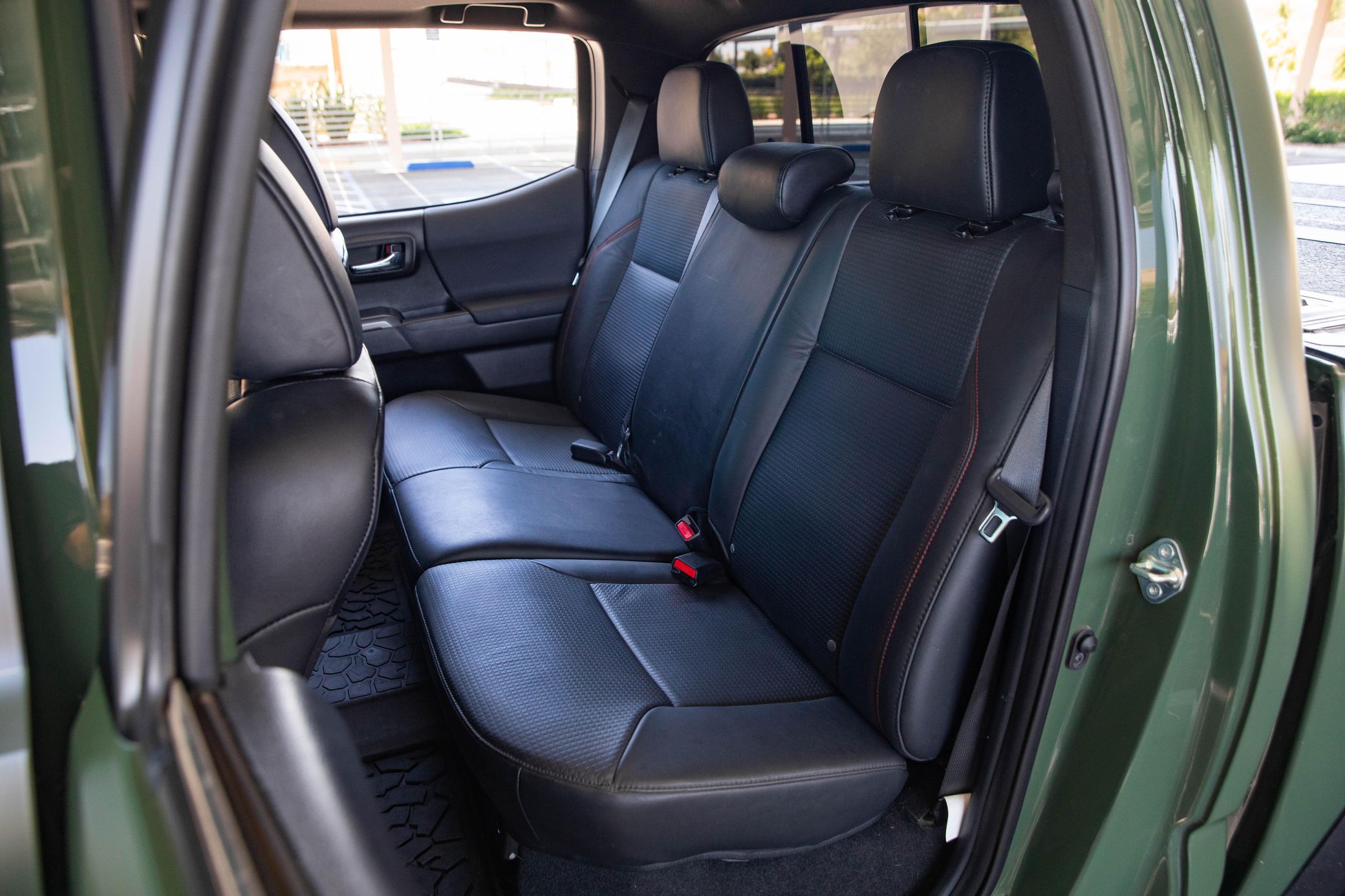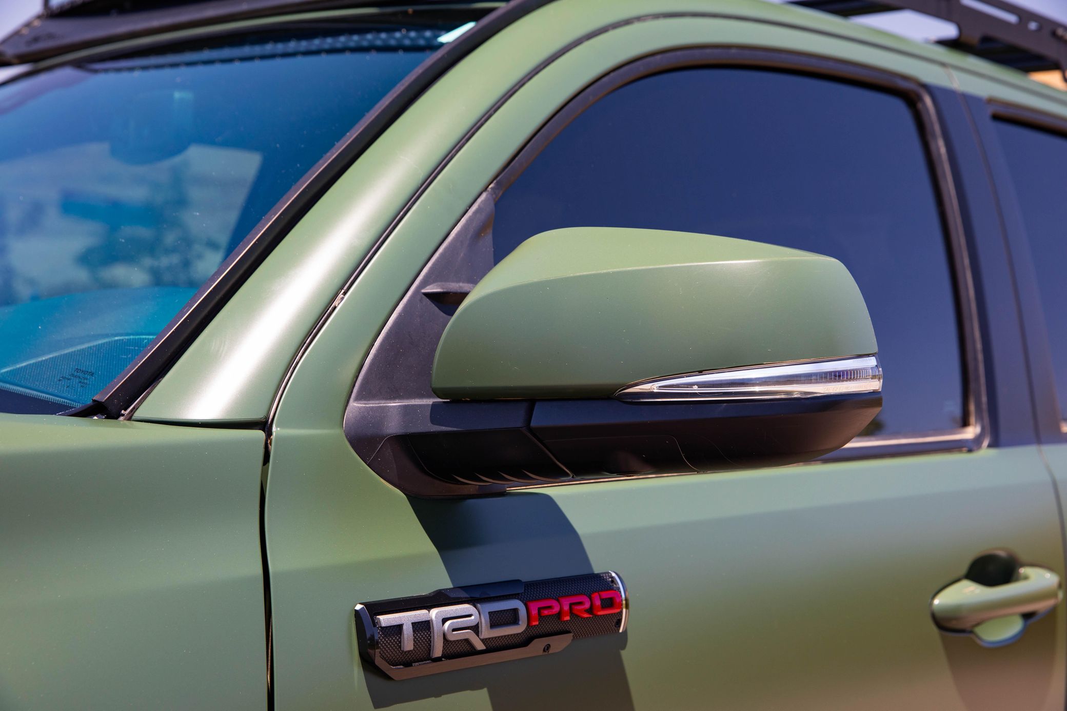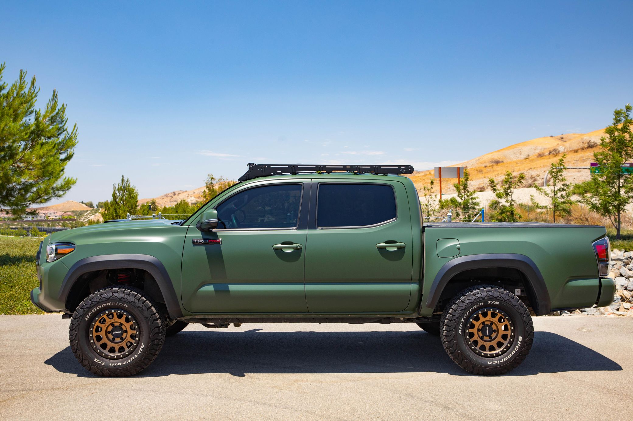 Introduced for the 2015 model year on the second generation Tacoma, the TRD Pro is the most extreme version of the Tacoma available from the factory. The third generation Tacoma TRD Pro features Fox dual-reservoir shocks, a locking rear differential, a TRD exhaust, and all-terrain tires. It also came equipped with a model-specific leather upholstery with red stitching as well as unique exterior badging.
