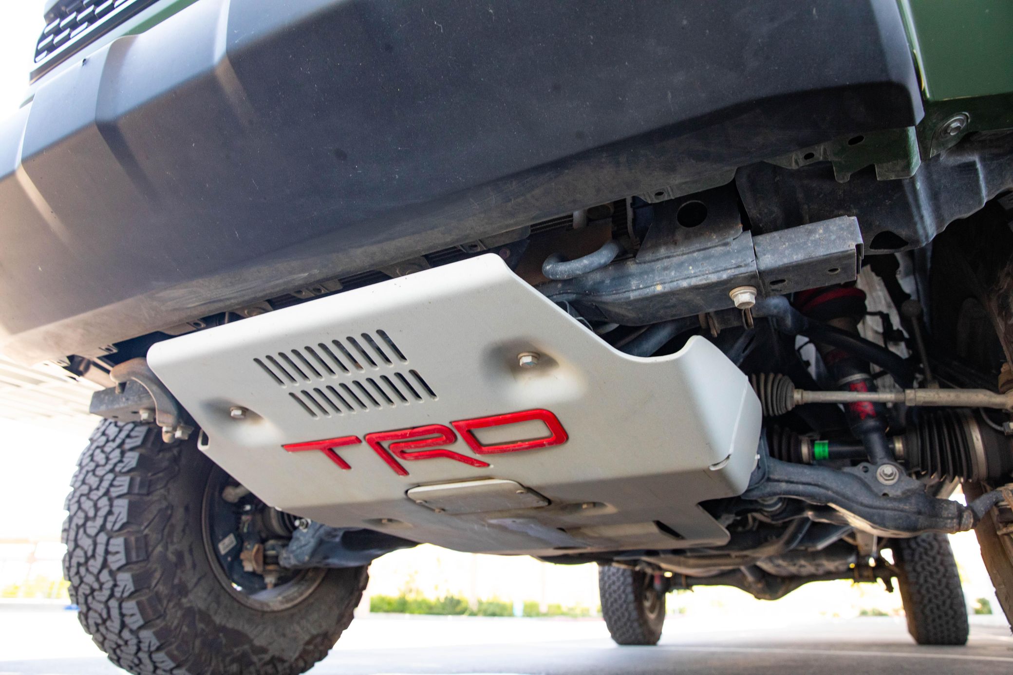 TRD-tuned Fox 2.5 internal bypass shocks with rear remote reservoirs