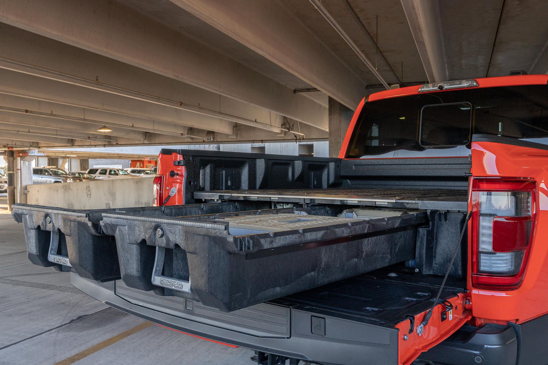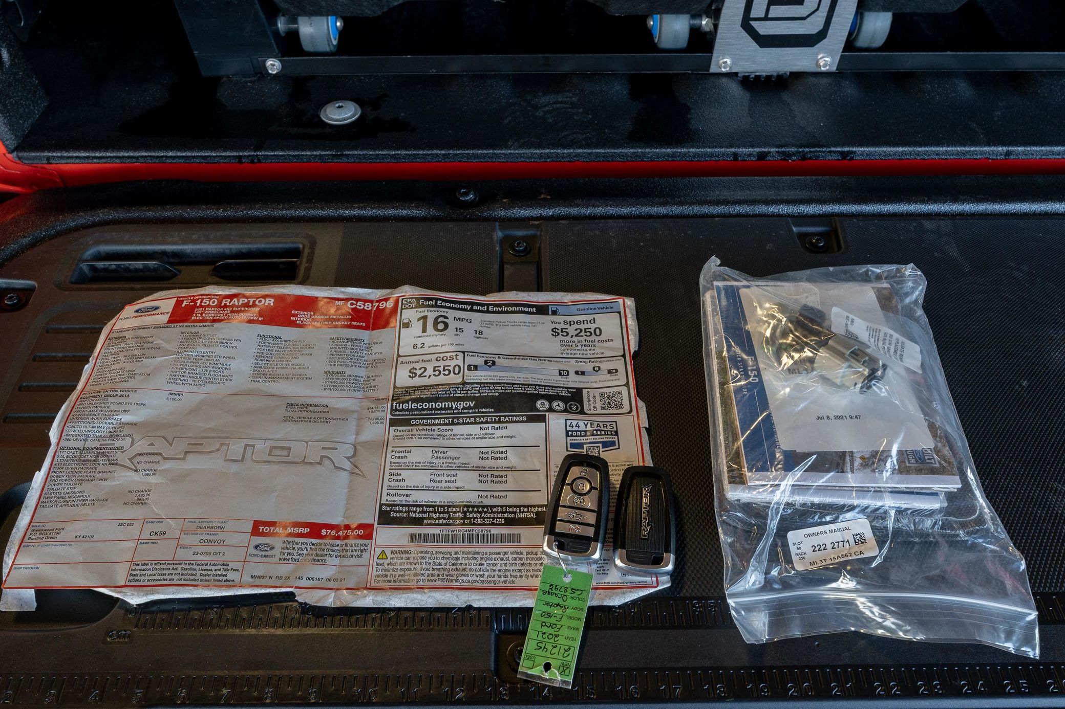 THIS… is a 2021 Ford F-150 Raptor, finished in Code Orange Metallic with a black interior. The attached Carfax history report lists no accidents or damage in this truck’s past. Factory equipment includes the Power Tech and Raptor Carbon packages, an 18-speaker Bang & Olufsen audio system, 17-inch wheels, a Raptor-specific off-road suspension system, skid plates, running boards, a trailer hitch, heated and ventilated front seats, a 360-degree camera system, and rear parking sensors. Modifications reported by the seller are limited to Decked bed drawers and Line-X spray-in bed liner. Designed to speed across the desert Baja racing-style, the third-generation F-150 Raptor made its debut for the 2021 model year. In addition to styling changes, Ford upgraded the rear suspension to a coil-spring setup to replace the old leaf springs. Additionally, the new Raptor gets a fully digital instrument cluster, a 12-inch touchscreen infotainment system, and a shift lever that folds flat into the center console area. Power for this Raptor comes from a turbocharged 3.5-liter “EcoBoost” V6, which produces 450 horsepower and 510 lb-ft of torque. The engine spins the 4 wheels via a 10-speed automatic transmission linked to a pair of shift paddles and a 2-speed transfer case.