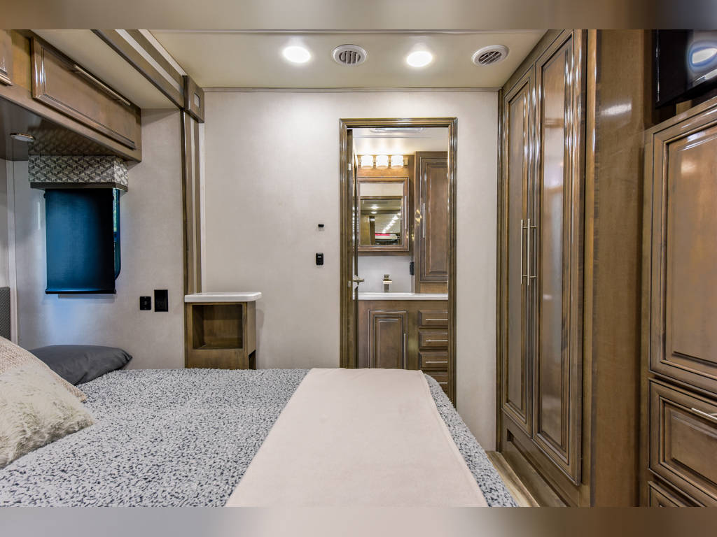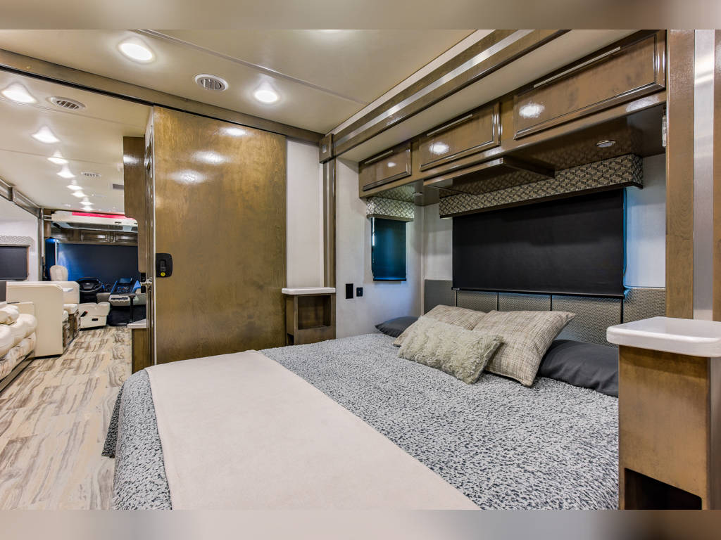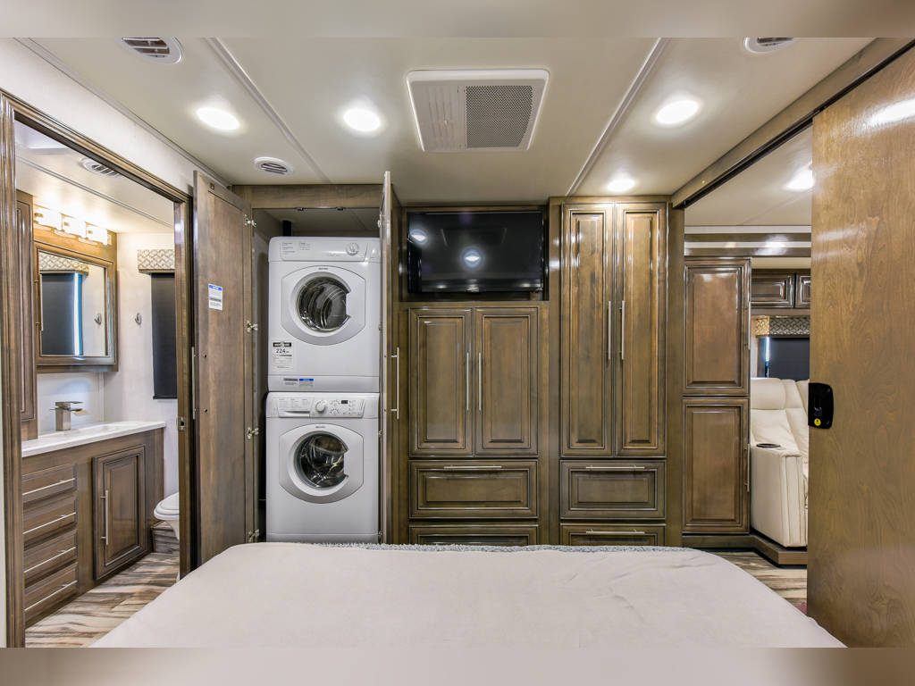 Like new and low mileage (1,415mi)! This “condo on wheels” has everything you need to full time such as a King Size Bed, Stackable Splendide Washer and Dryer, Bath and a Half, Residential Size LG Refrigerator and comfy Thomas Payne Adjustable Theater Seat Couch with Heat and Massage!