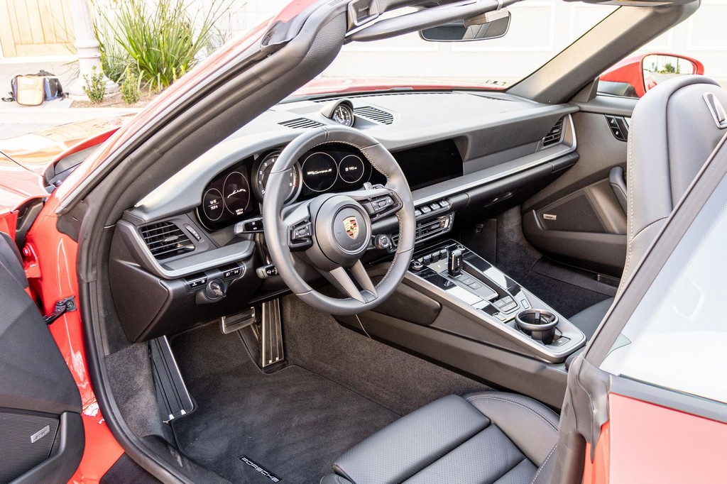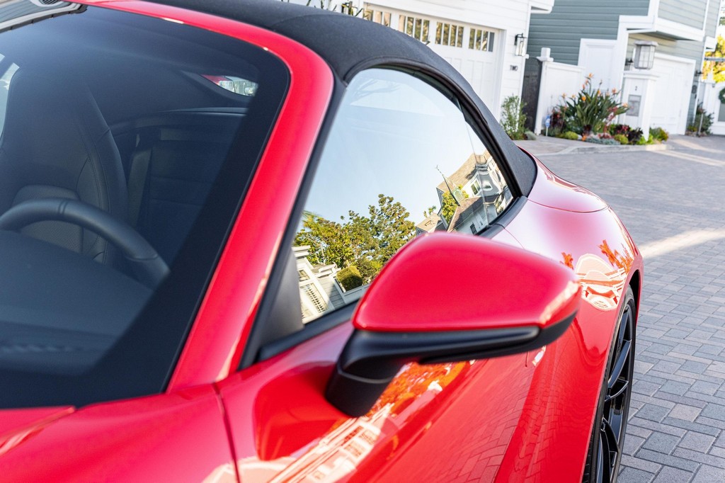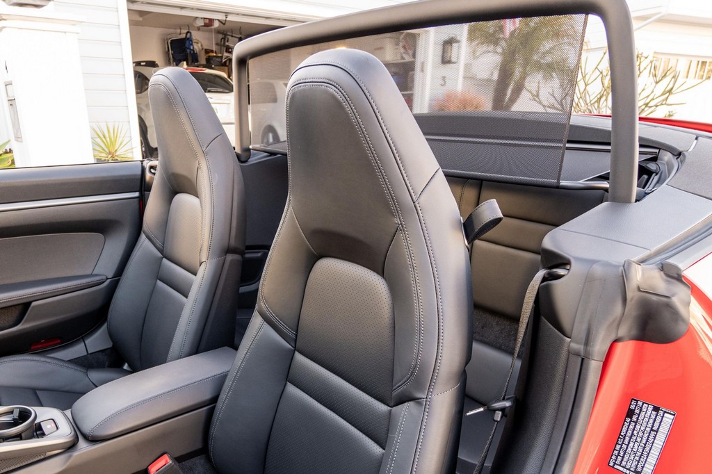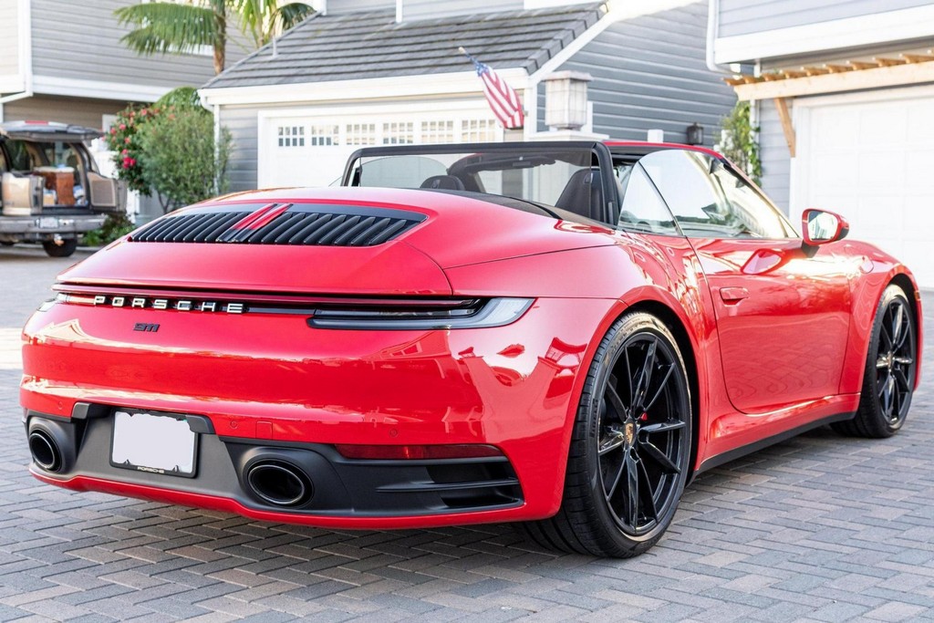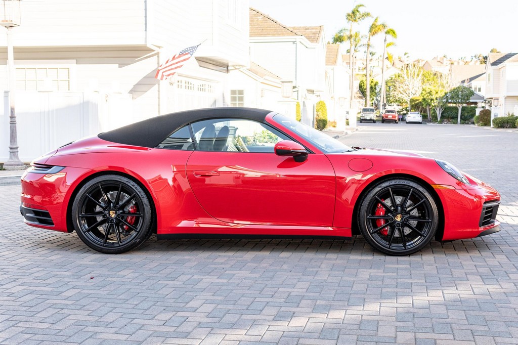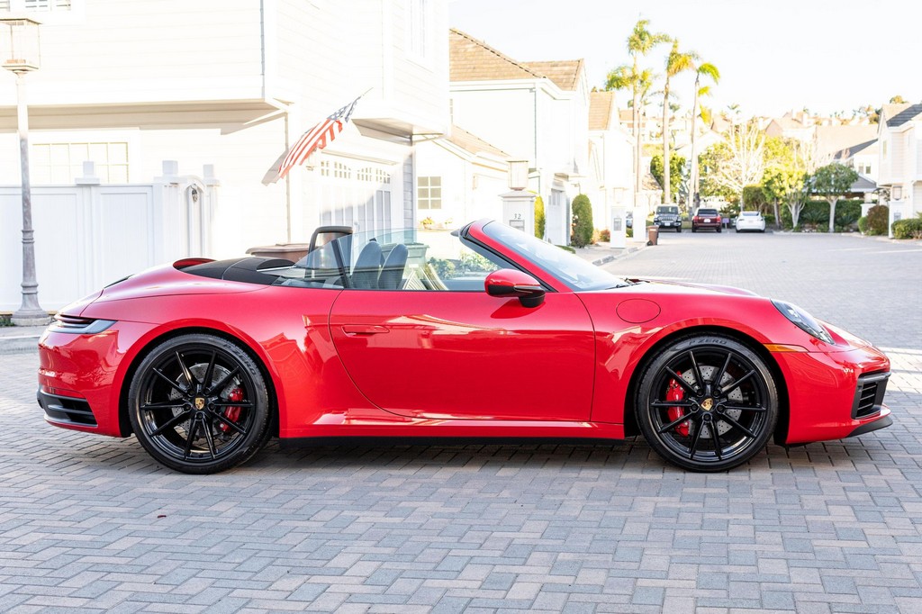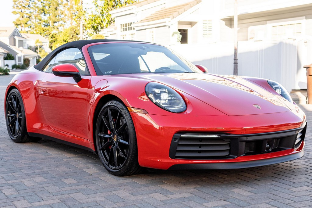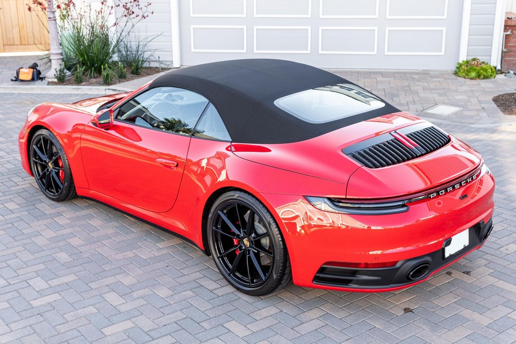 THIS… is a 2021 Porsche 911 Carrera S Cabriolet, finished in Guards Red with a black soft top, and a black interior. The attached Carfax history report lists no accidents or mileage inconsistencies. It also shows that this is a one-owner car that’s been California-owned since new. A partial list of notable equipment includes the Sport Package which features the Sport Chrono Package, a sport exhaust system, and Porsche Active Suspension Management (PASM) sport suspension. Other equipment includes 21-inch alloy wheels, 14-way power seats with memory package, a Bose sound system, Lane Change Assist (LCA), Adaptive Cruise Control (ACC), and more detailed below. Porsche released the “992” generation of the 911 for 2020. Slightly longer and wider than its predecessor, it received evolutionary design updates and much more significant changes under the body, including revised engines and an 8-speed automatic transmission. Power for this 911 comes from a twin-turbocharged 3.0-liter flat-6 engine, rated at 443 horsepower and 390 lb-ft of torque. Output is sent to the rear wheels via an 8-speed Porsche Doppelkupplung (PDK) transmission linked to a pair of shift paddles.