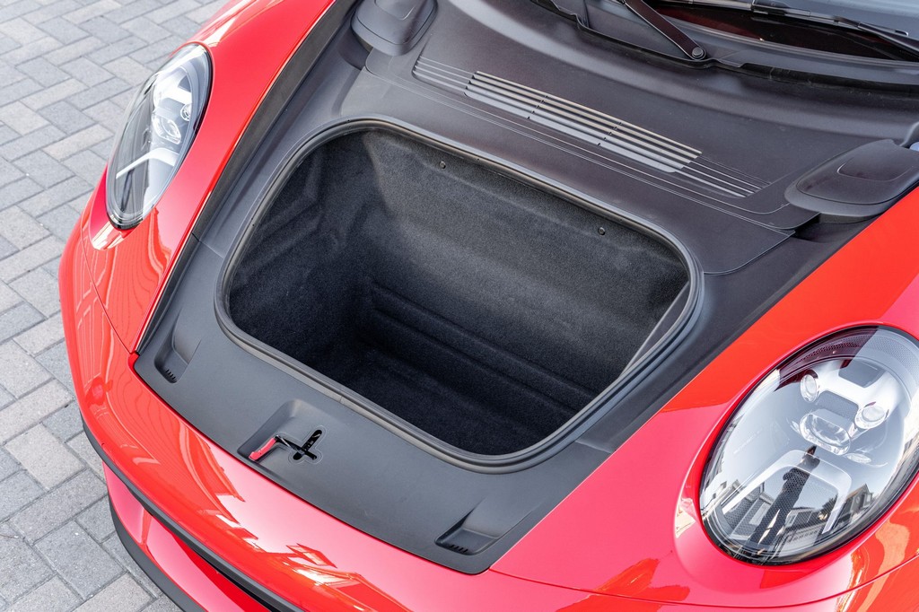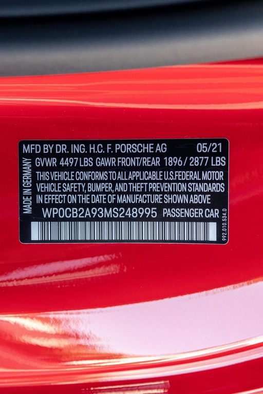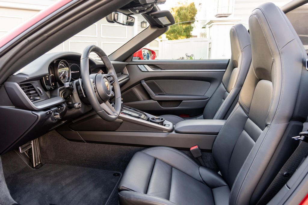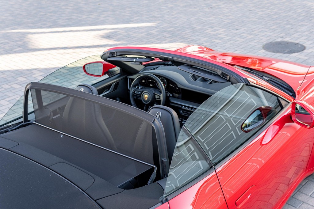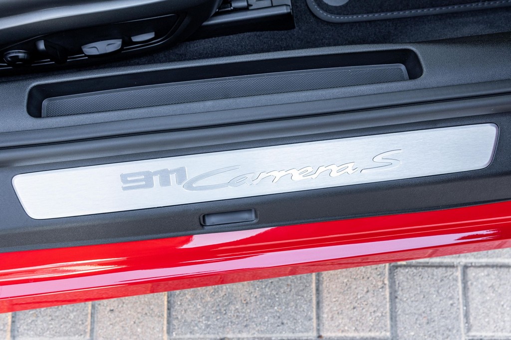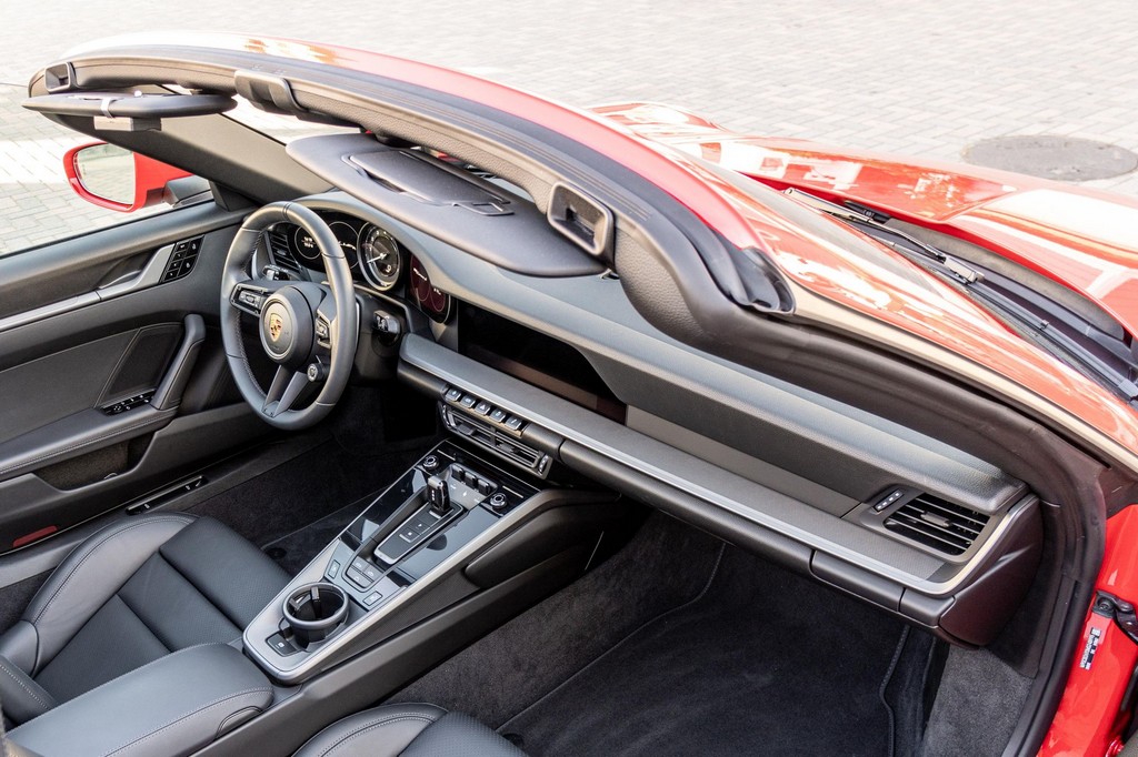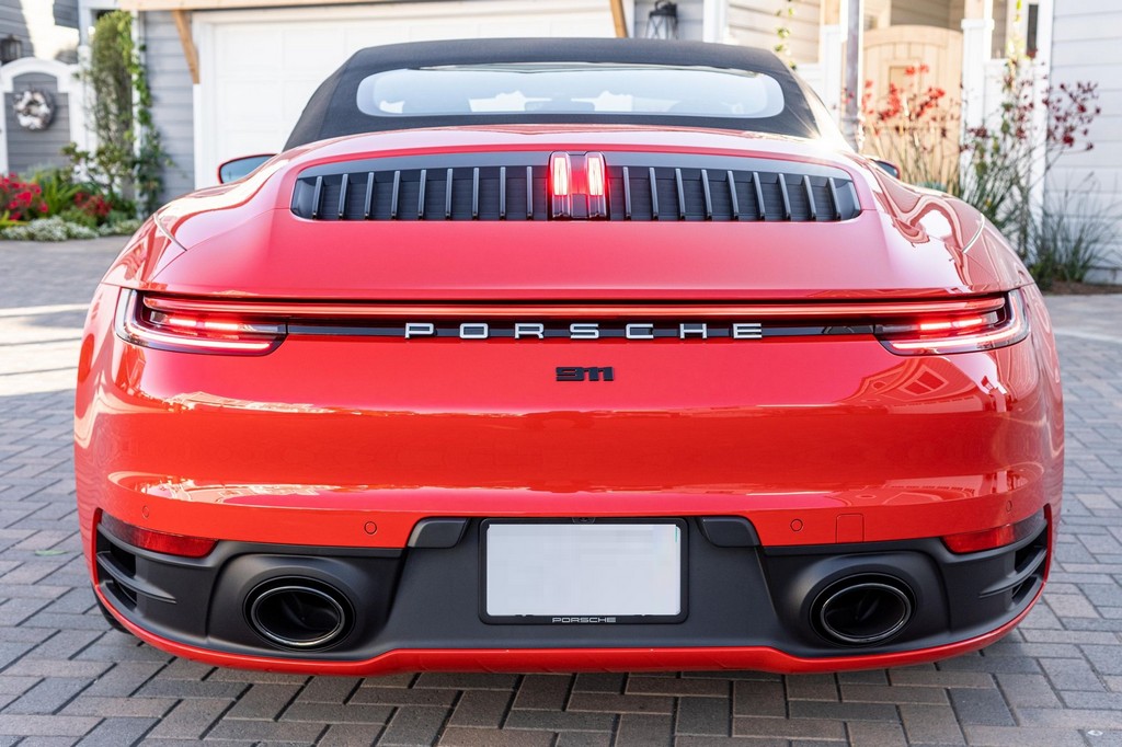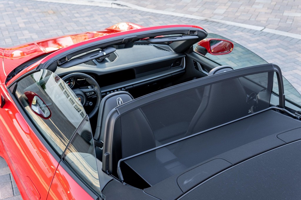 THIS… is a 2021 Porsche 911 Carrera S Cabriolet, finished in Guards Red with a black soft top, and a black interior. The attached Carfax history report lists no accidents or mileage inconsistencies. It also shows that this is a one-owner car that’s been California-owned since new. A partial list of notable equipment includes the Sport Package which features the Sport Chrono Package, a sport exhaust system, and Porsche Active Suspension Management (PASM) sport suspension. Other equipment includes 21-inch alloy wheels, 14-way power seats with memory package, a Bose sound system, Lane Change Assist (LCA), Adaptive Cruise Control (ACC), and more detailed below. Porsche released the “992” generation of the 911 for 2020. Slightly longer and wider than its predecessor, it received evolutionary design updates and much more significant changes under the body, including revised engines and an 8-speed automatic transmission. Power for this 911 comes from a twin-turbocharged 3.0-liter flat-6 engine, rated at 443 horsepower and 390 lb-ft of torque. Output is sent to the rear wheels via an 8-speed Porsche Doppelkupplung (PDK) transmission linked to a pair of shift paddles.