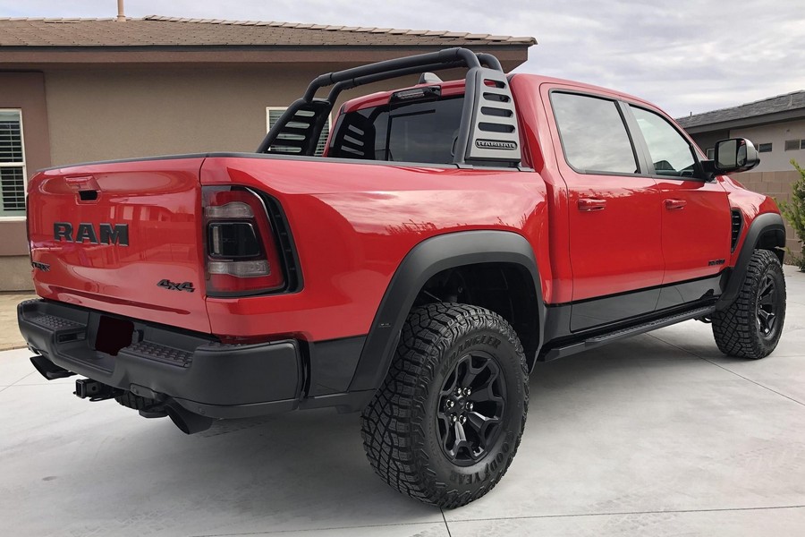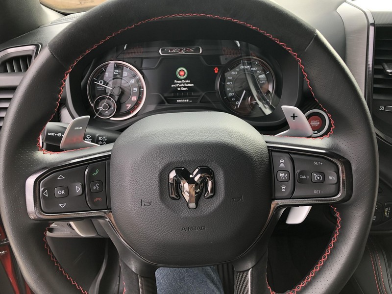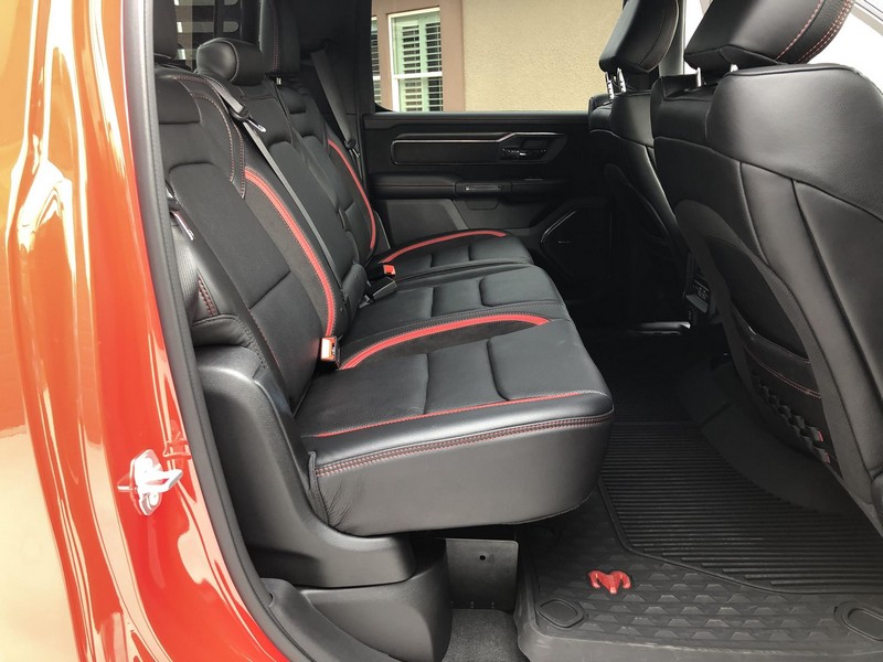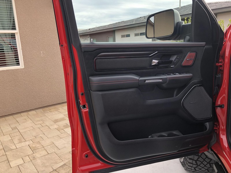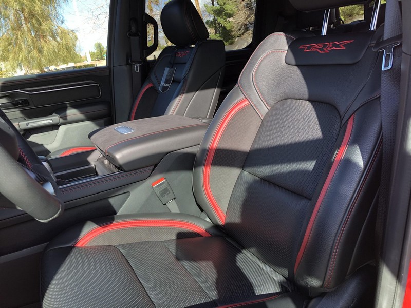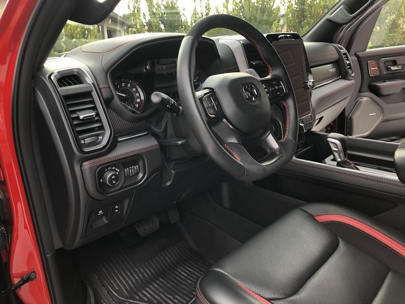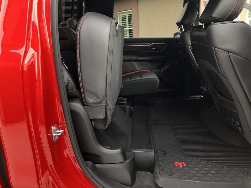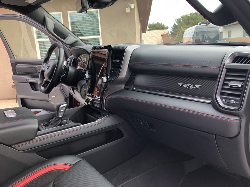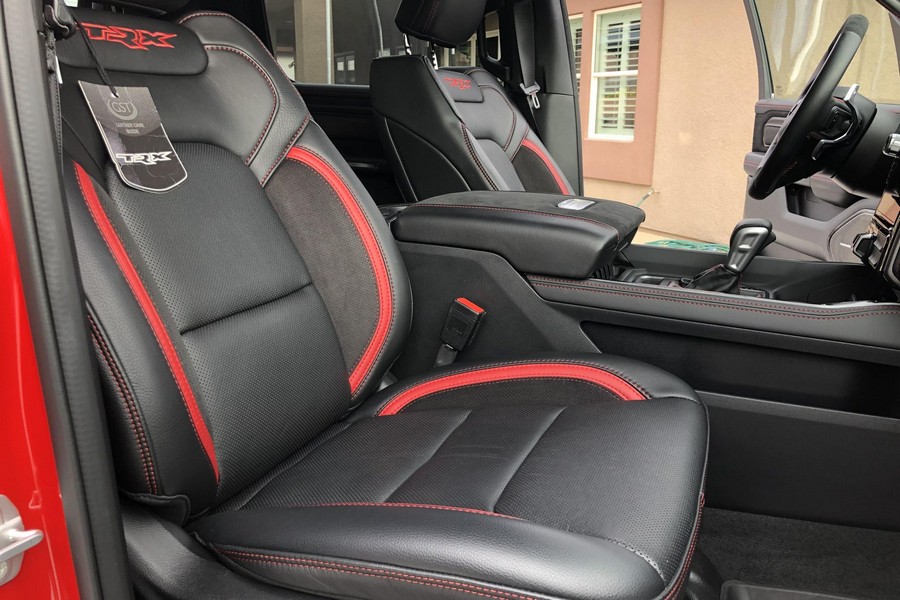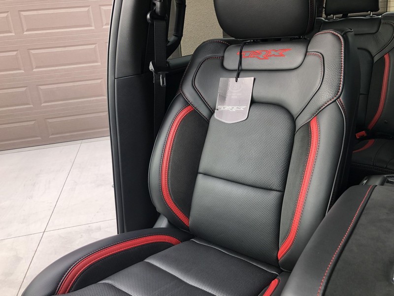 TRX Level 2 Equipment Group (leather-trimmed bucket seats, heated and ventilated front seats, heated rear seats, heated steering wheel, luxury front door trim panel, full-length premium upgraded floor console, premium wrapped instrument panel bezel, instrument panel LED ambient light piping, front and rear door accent lighting, memory driver’s seat, mirrors, pedals, and radio, power-adjustable lumbar support for the front seats, trailer brake controller, blind-spot monitoring with cross-path detection, front and rear park assist, LED box lighting, rain-sensing wipers, rear under-seat storage compartment, remote start, power tailgate, 60/40 split folding and reclining rear seats)