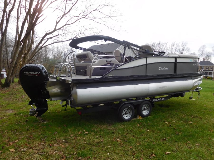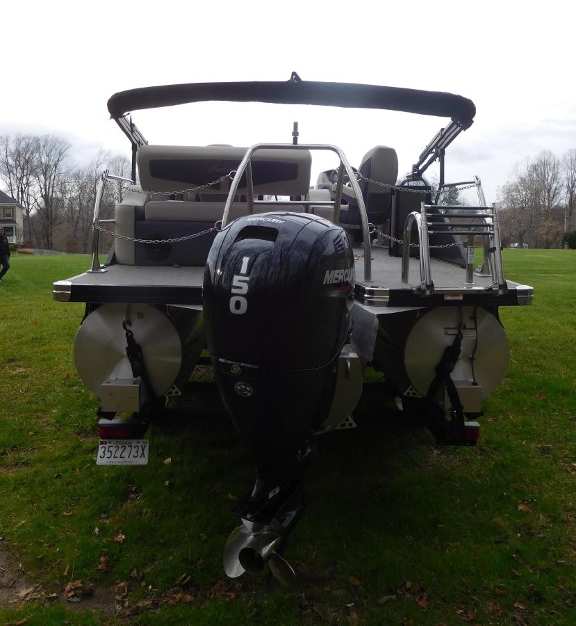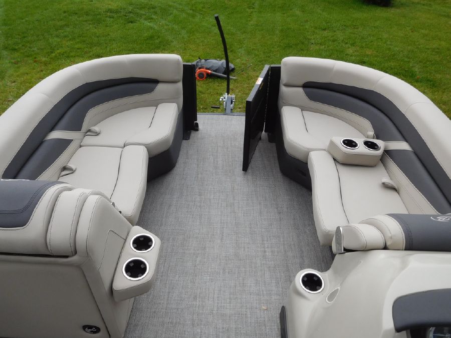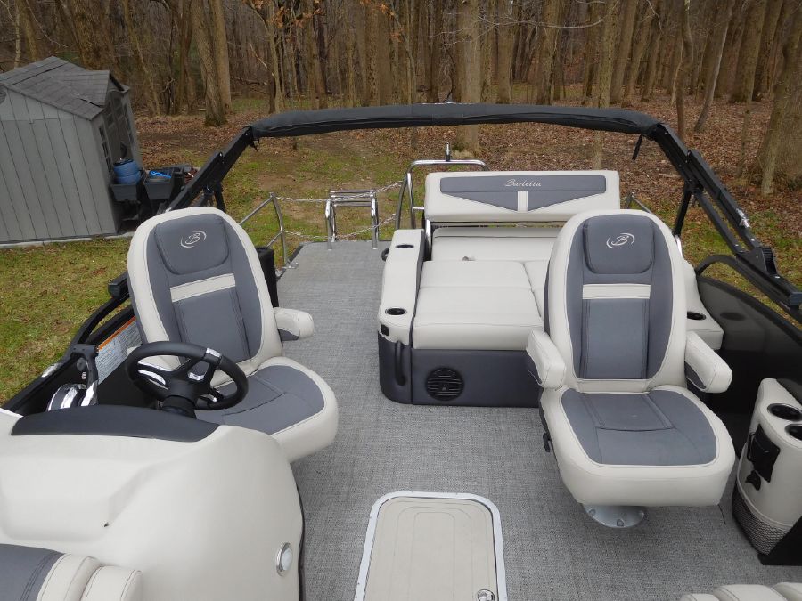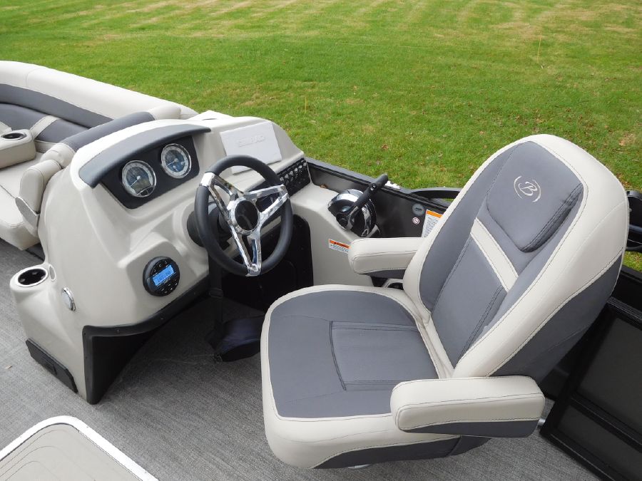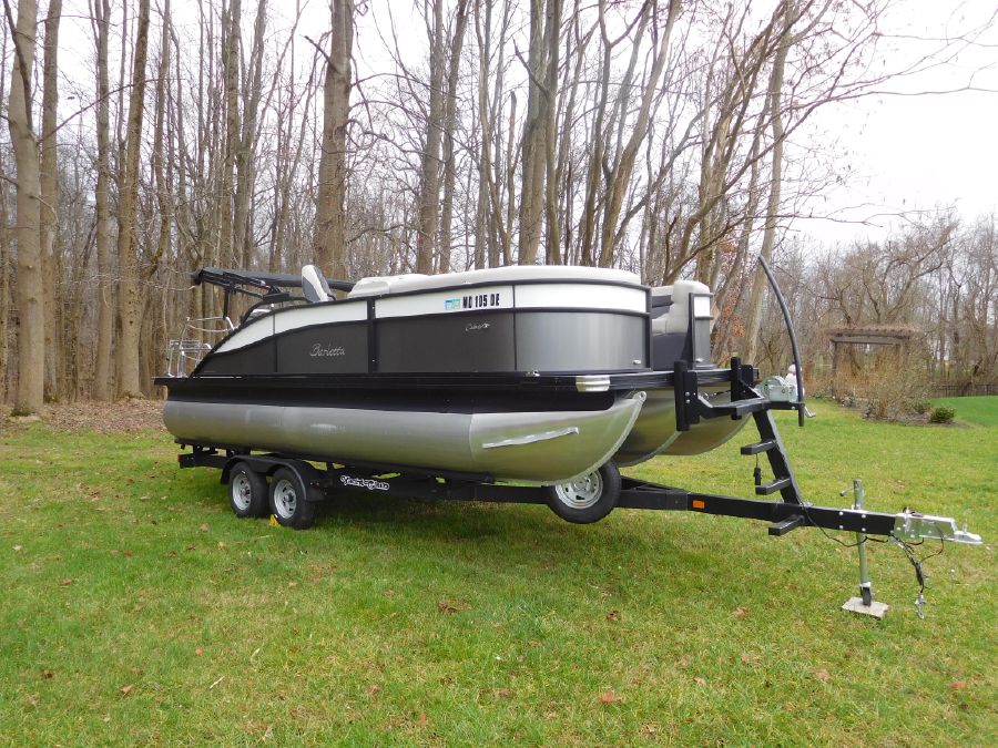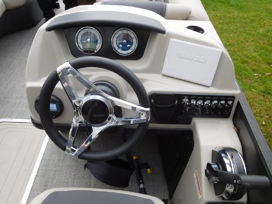 This Pontoon is loaded, Power Bimini top, Simrad GPS, upgraded sound system, power points throughout, large lounger/sunpad, Deluxe trailer., full cover and more.