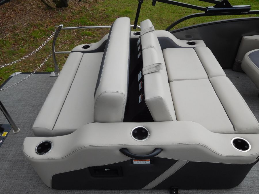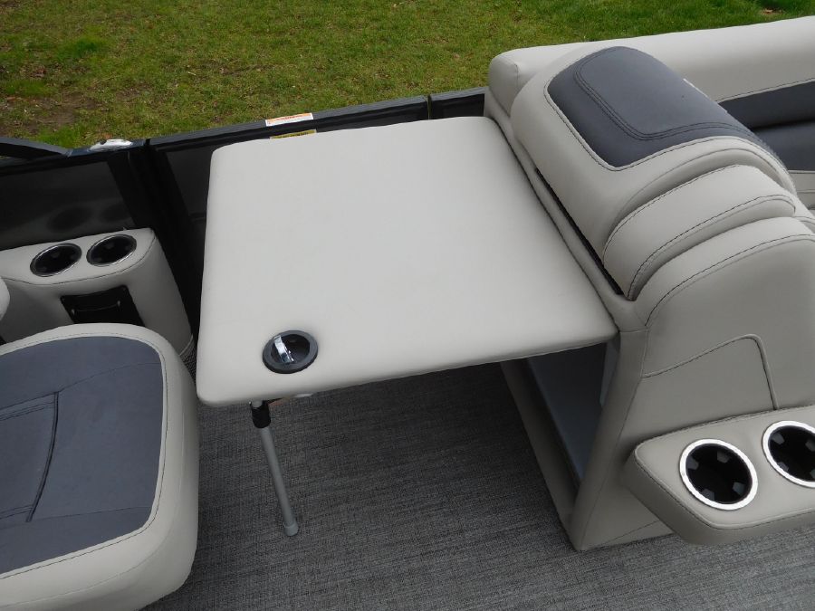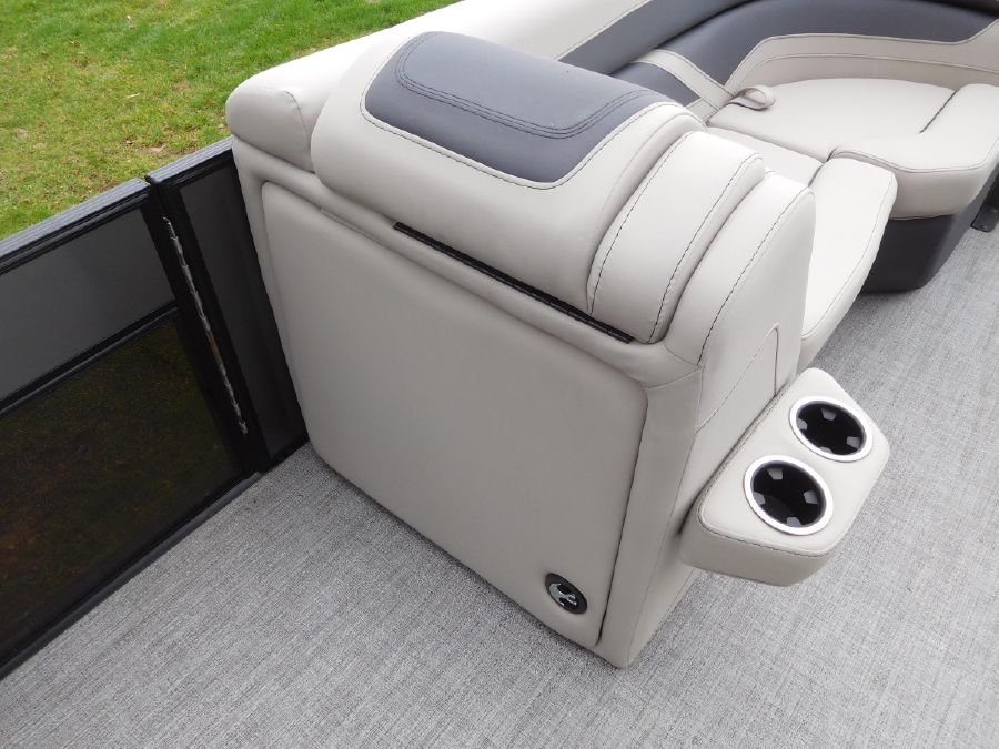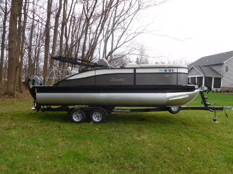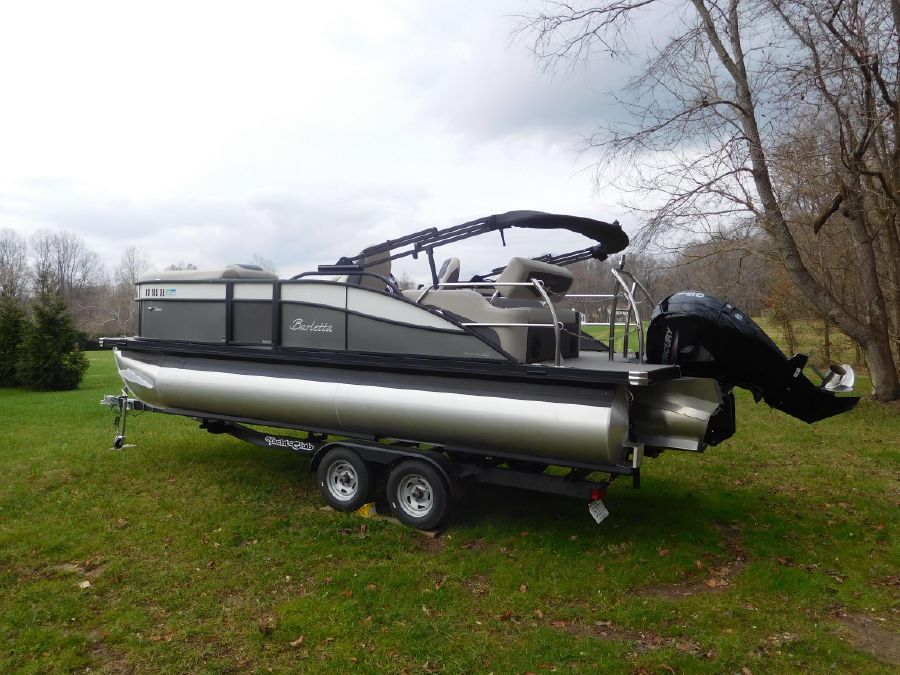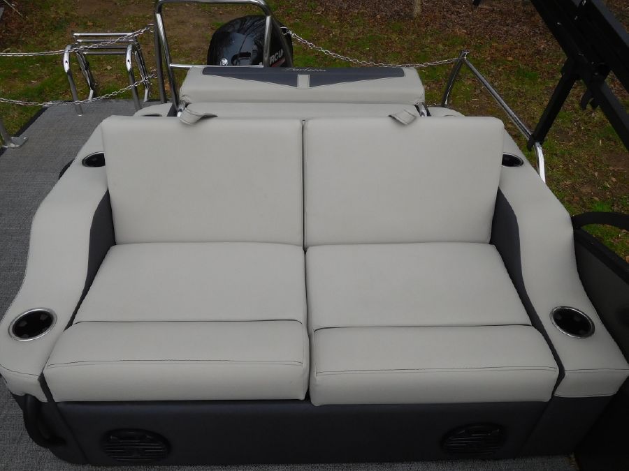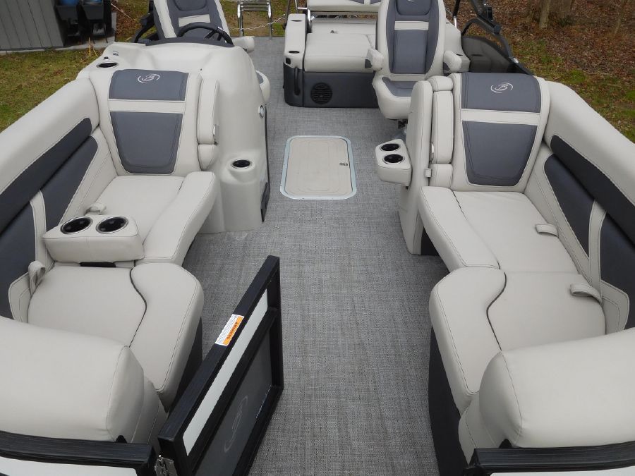 This Pontoon is loaded, Power Bimini top, Simrad GPS, upgraded sound system, power points throughout, large lounger/sunpad, Deluxe trailer., full cover and more.