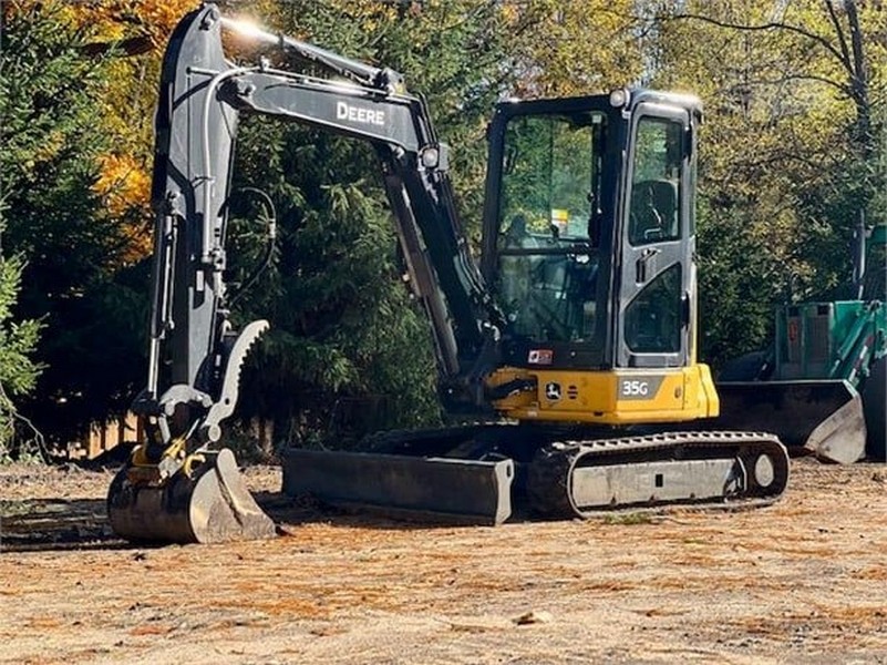 2022 John Deere 35G Mini Excavator, Cab, 23-HP Tier 4 Yanmar Diesel, 12″W Rubber Tracks, Hydraulic Thumb, Backfill Blade, Quick Coupler, Low Hours, Like New. No waiting for this years new model from dealer. Ready to work.