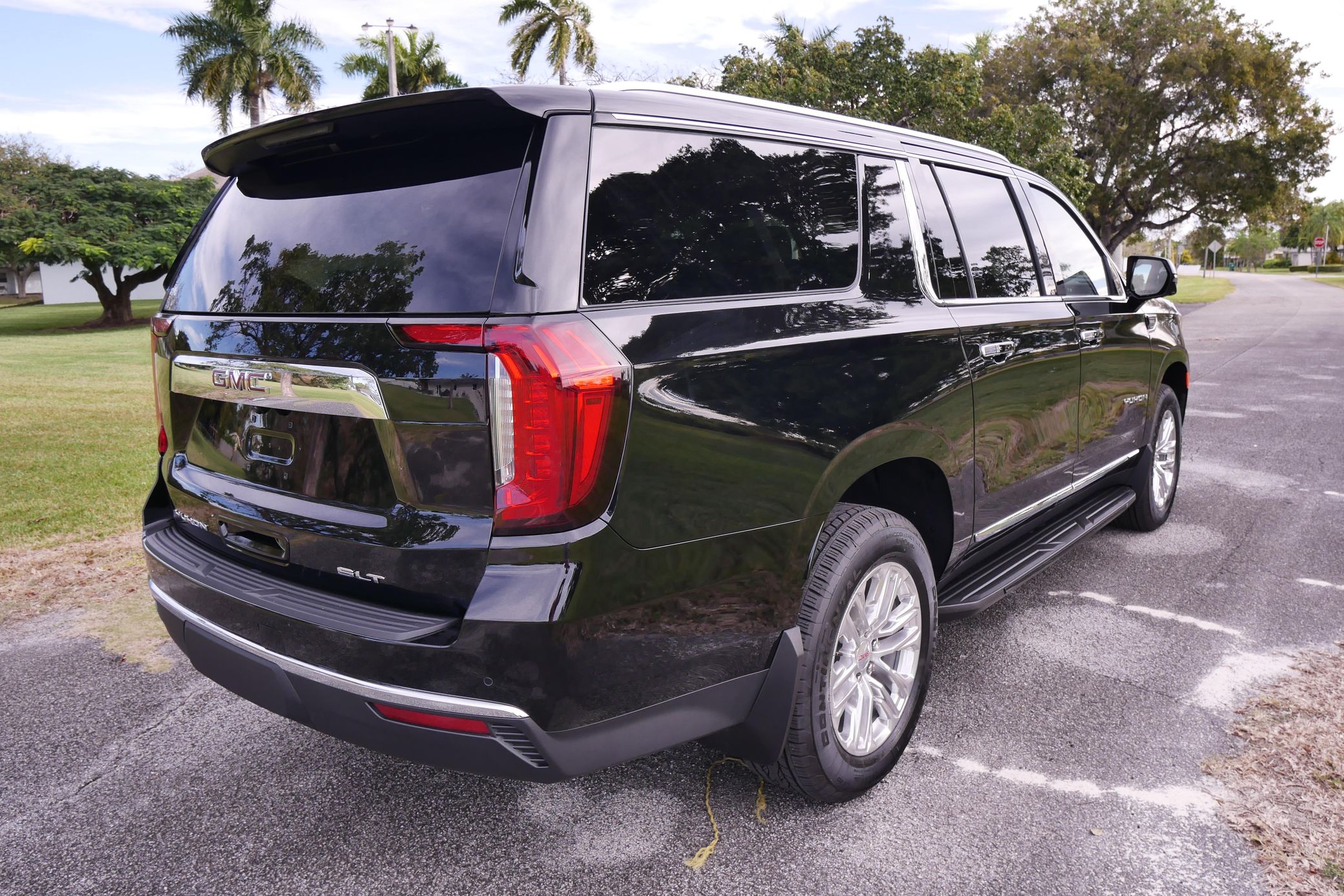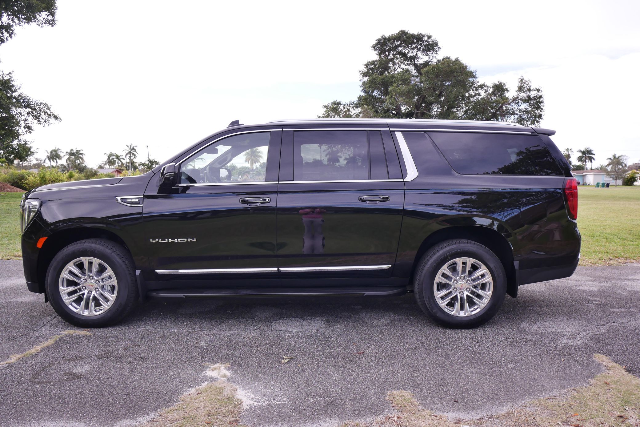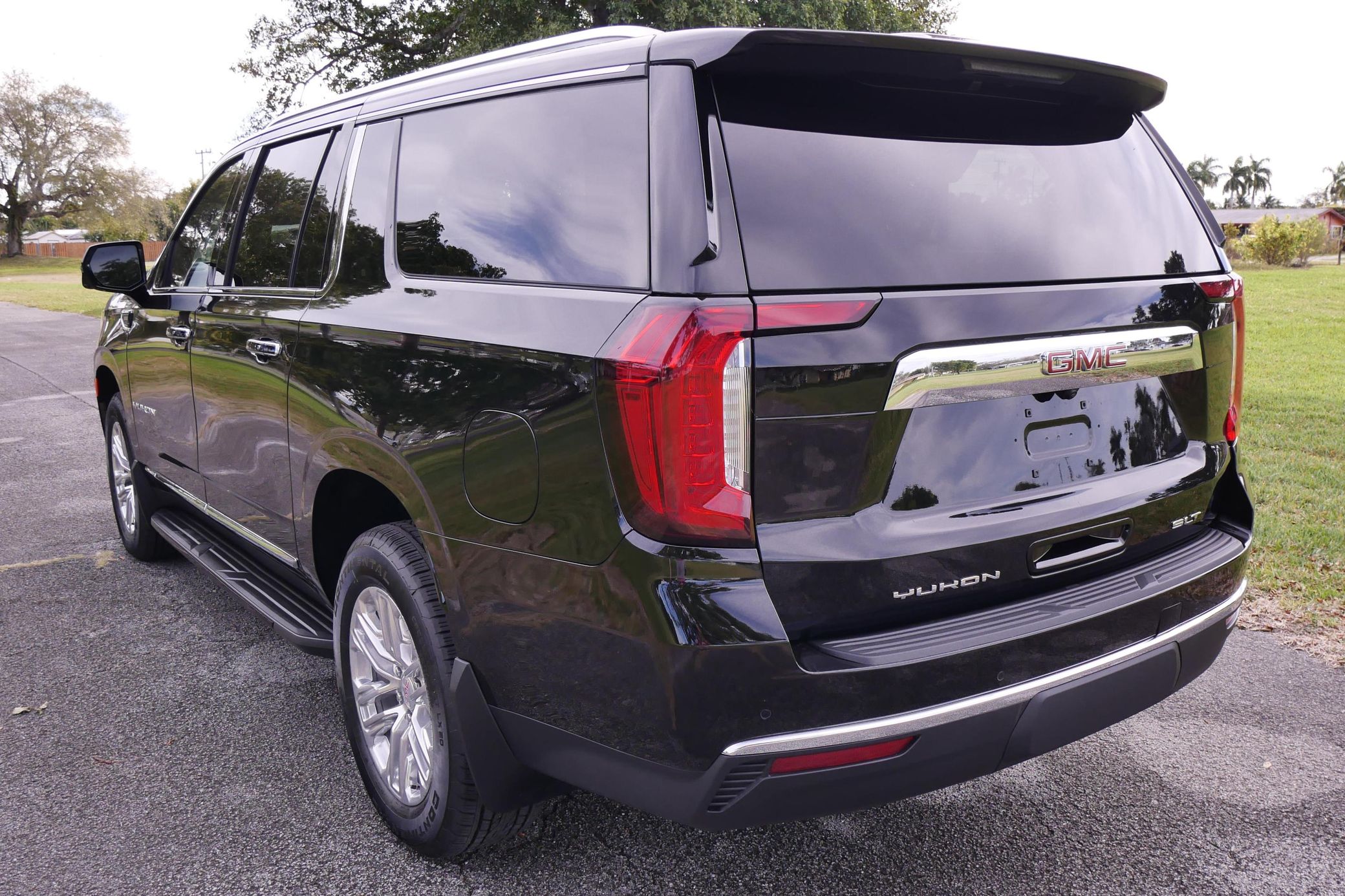 THIS… is a 2022 GMC Yukon XL SLT, finished in Onyx Black with a black interior. The attached Carfax history report shows only one owner and no accidents in this Yukon’s life so far. Factory Equipment includes the SLT Premium, SLT Luxury, and the Max Trailering packages, which offer notable items like a panoramic sunroof, a Bose sound system, heated and ventilated front seats, a heated second-row bench seat, a surround-view camera system, and more as detailed below. The seller reports no modifications. The GMC Yukon has been offered as an upscale, more luxury-oriented sibling to the Chevrolet Suburban since 1991, with the fifth generation being introduced for the 2021 model year. With the newest generation, GMC aimed to offer buyers not only a more luxurious truck, but also a more customizable one with more trim levels and equipment options than previously available. 2022 models, like this example, also gain a standard 12-inch driver information display as well as some integrated Google Voice Assistant features. Power comes from a “Duramax” 3.0-liter turbocharged diesel engine rated at 277 horsepower and 460 lb-ft of torque. Output is sent to the rear or all four wheels via a 10-speed automatic transmission and electronically controlled 2-speed transfer case.