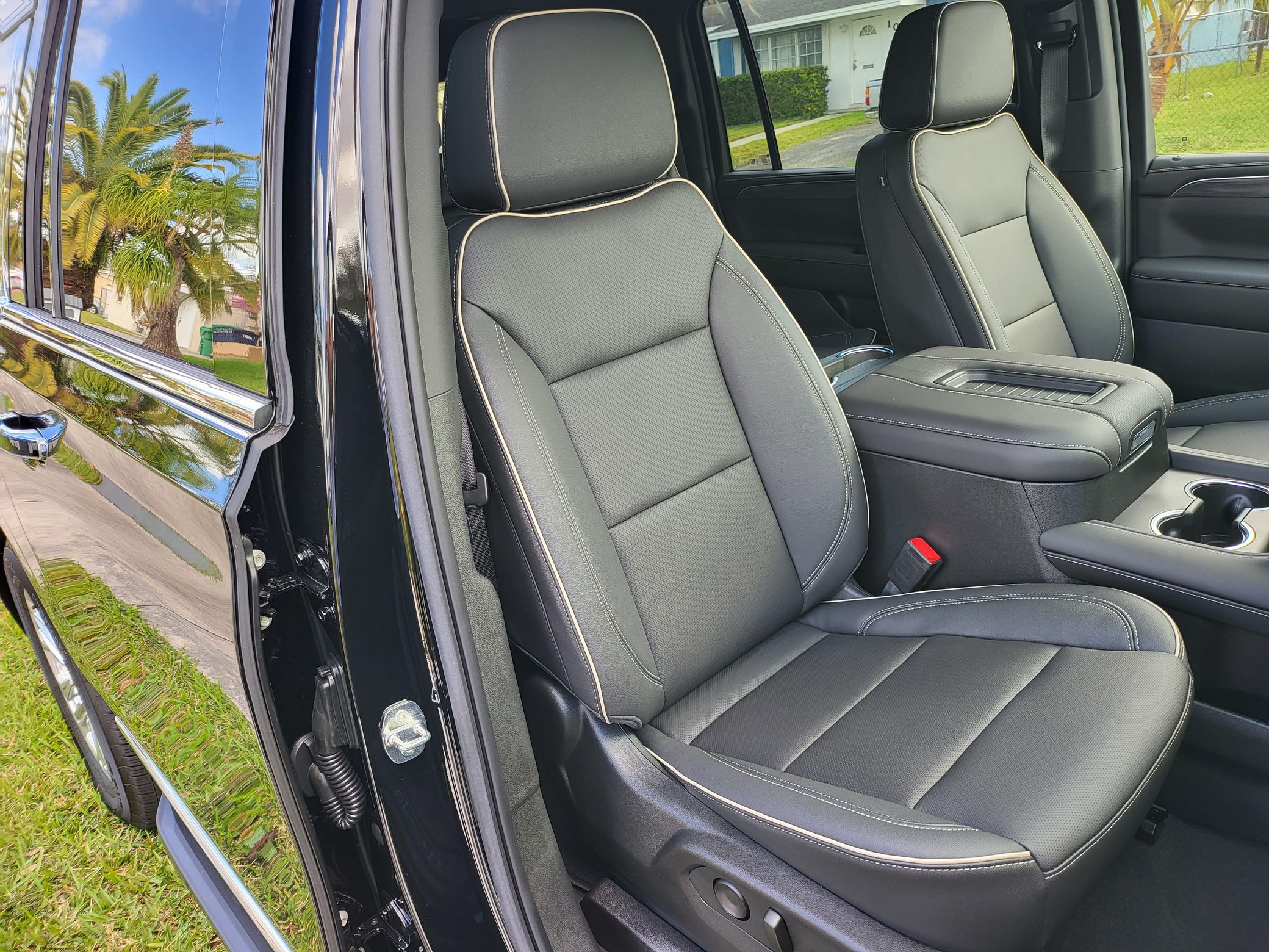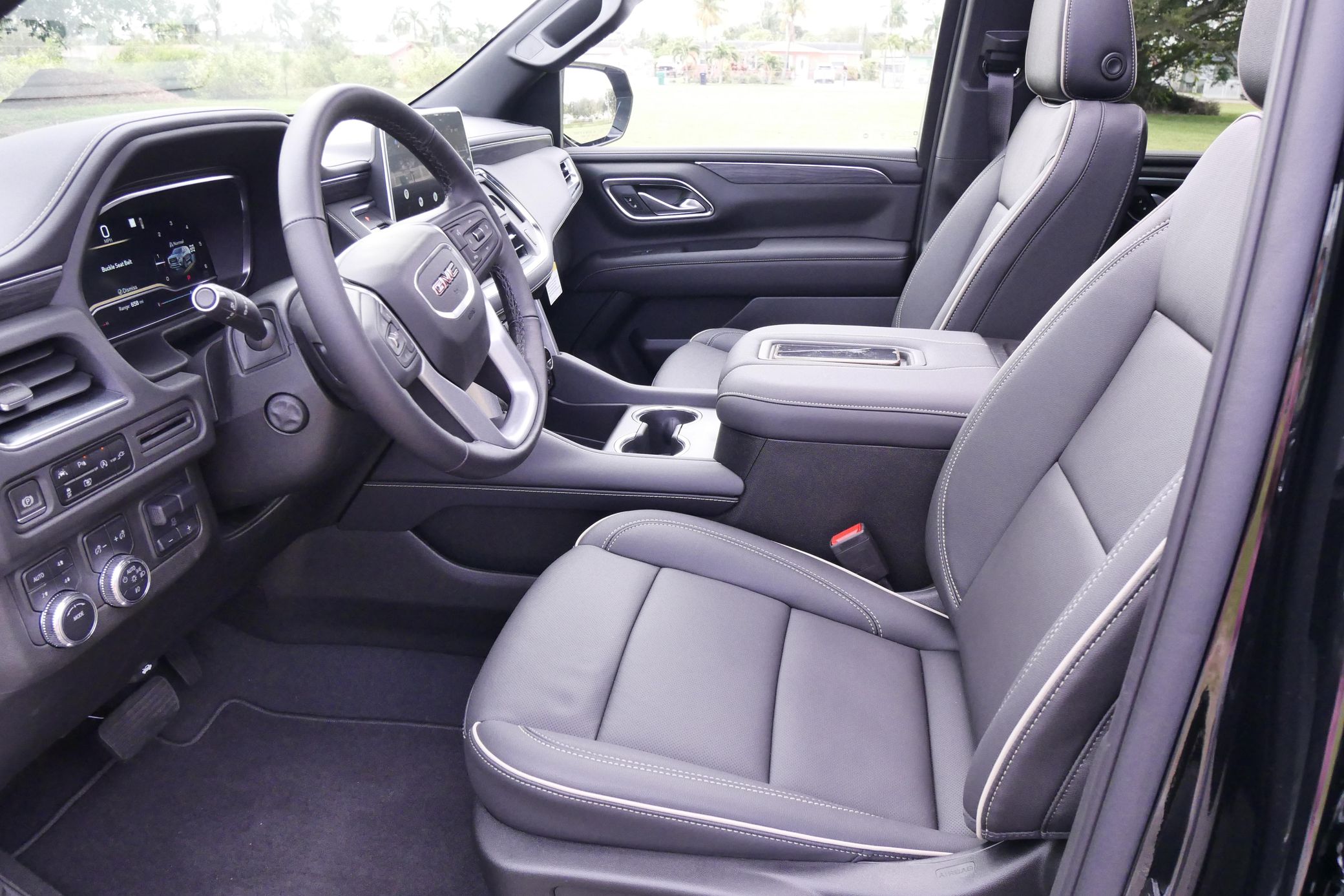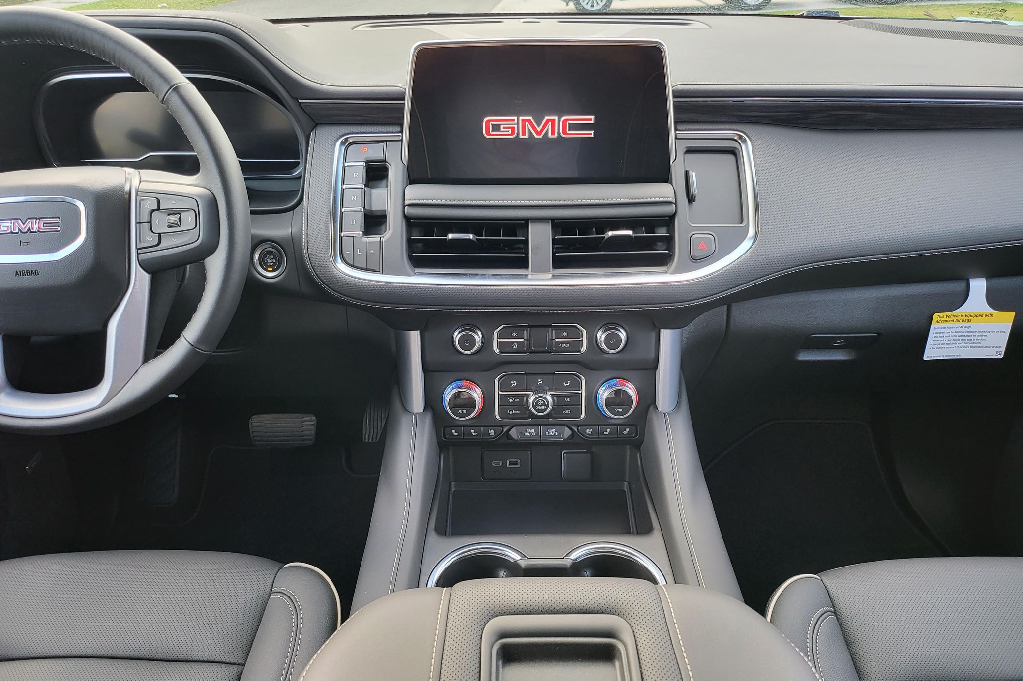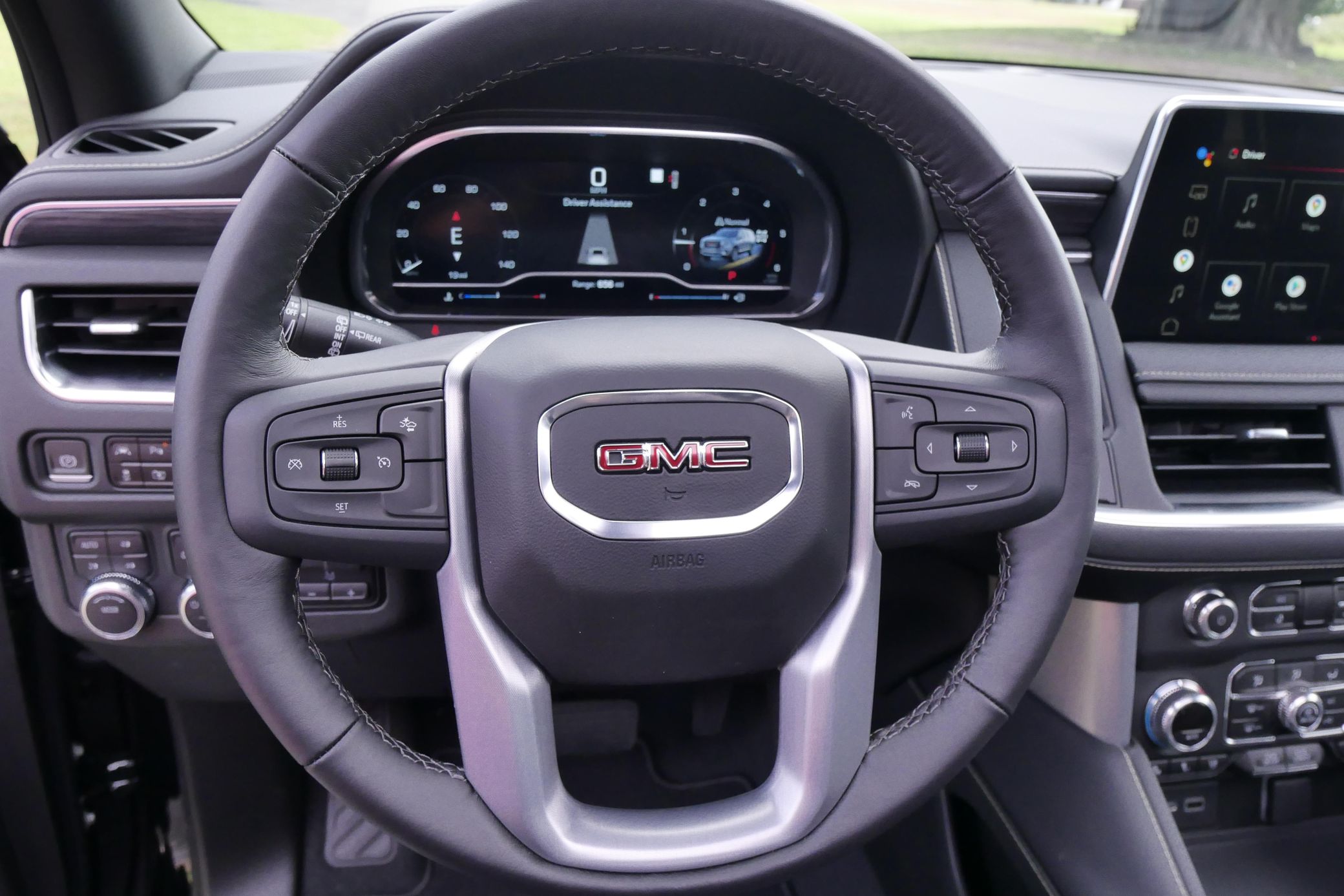THIS… is a 2022 GMC Yukon XL SLT, finished in Onyx Black with a black interior. The attached Carfax history report shows only one owner and no accidents in this Yukon’s life so far. Factory Equipment includes the SLT Premium, SLT Luxury, and the Max Trailering packages, which offer notable items like a panoramic sunroof, a Bose sound system, heated and ventilated front seats, a heated second-row bench seat, a surround-view camera system, and more as detailed below. The seller reports no modifications. The GMC Yukon has been offered as an upscale, more luxury-oriented sibling to the Chevrolet Suburban since 1991, with the fifth generation being introduced for the 2021 model year. With the newest generation, GMC aimed to offer buyers not only a more luxurious truck, but also a more customizable one with more trim levels and equipment options than previously available. 2022 models, like this example, also gain a standard 12-inch driver information display as well as some integrated Google Voice Assistant features. Power comes from a “Duramax” 3.0-liter turbocharged diesel engine rated at 277 horsepower and 460 lb-ft of torque. Output is sent to the rear or all four wheels via a 10-speed automatic transmission and electronically controlled 2-speed transfer case.
