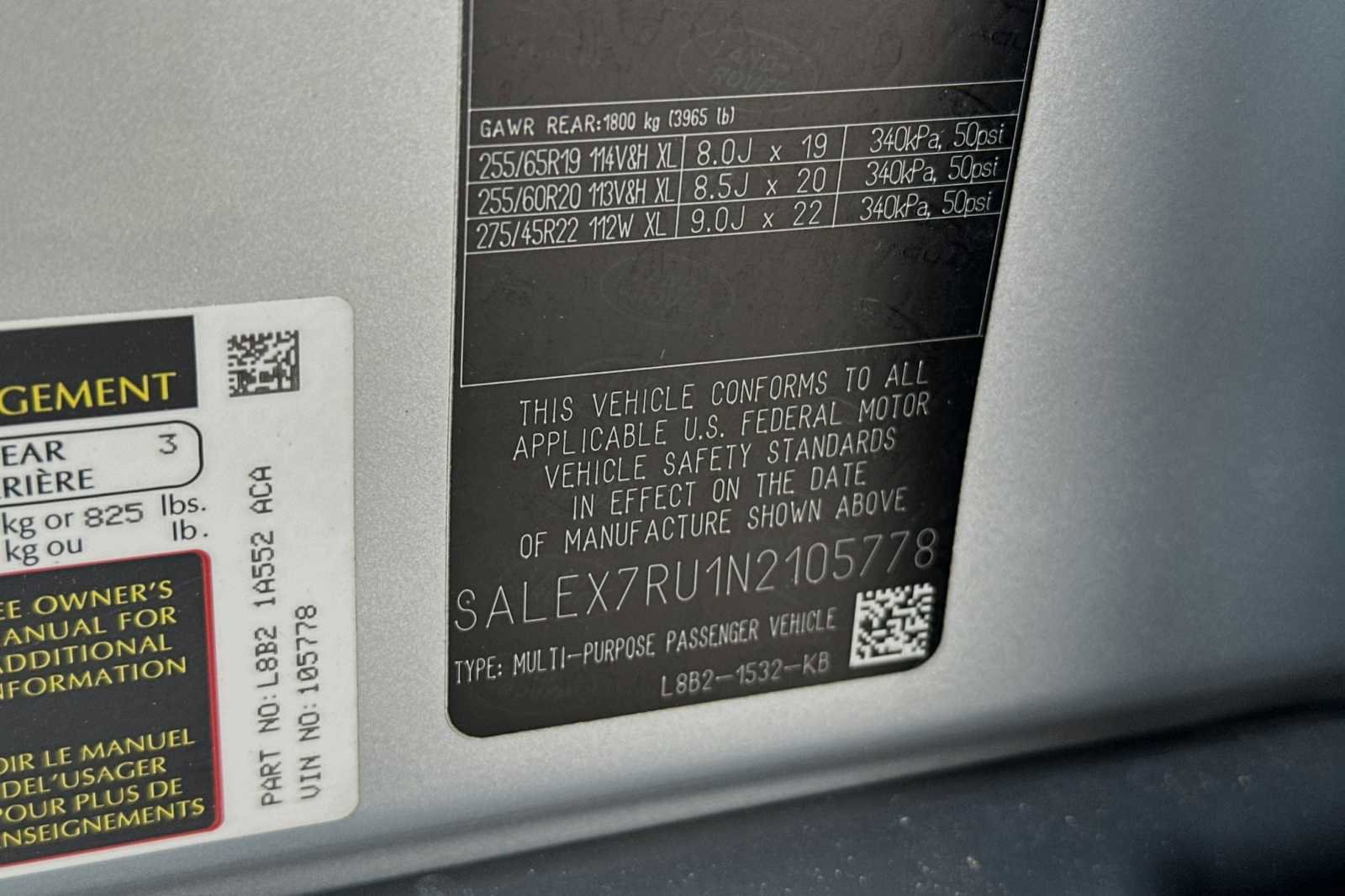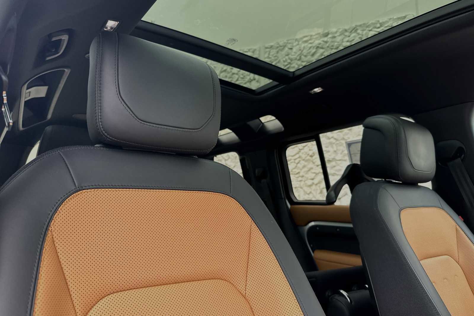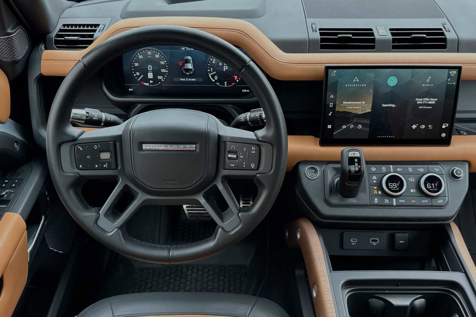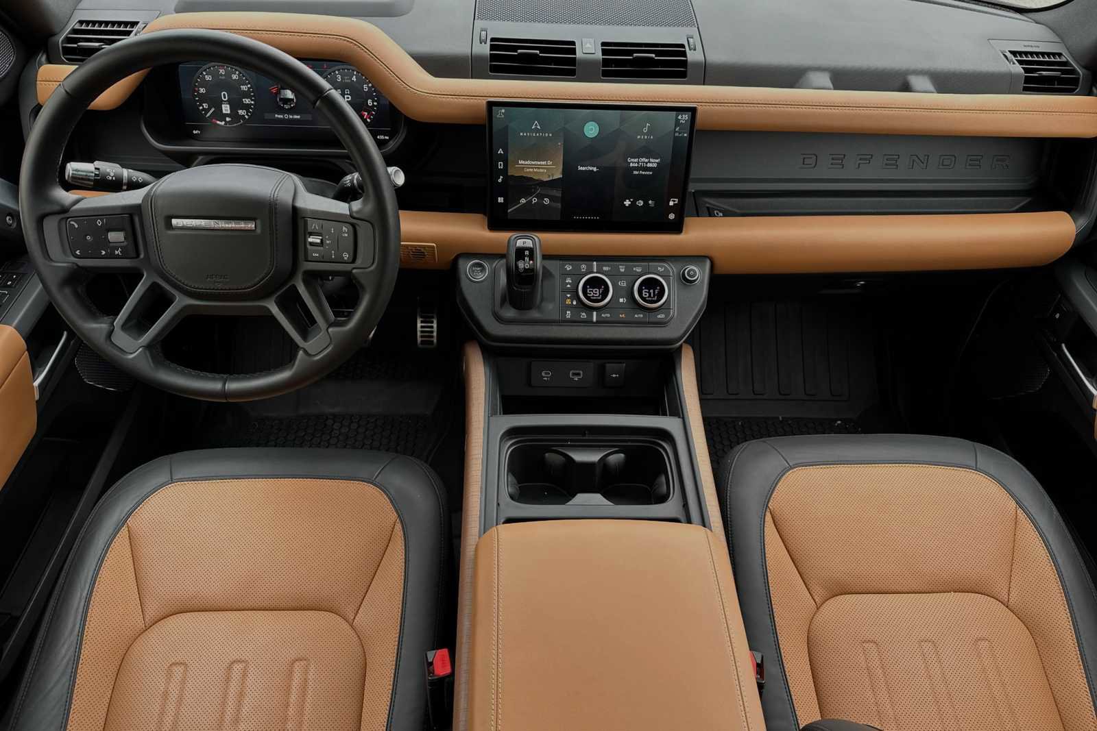 2022 Land Rover Defender 110 X…Hakuba SIlver Exterior…Vintage Tan Windsor Leather…22″ Gloss Black Wheels…Extended Black Exterior Package…Raised Air Intake…11.4″ Big Touchscreen…Cold Climate Package…Tow Hitch Receiver…Front Center Console Refrigerator Compartment… Gloss Black Signature Graphic…Cabin Air Ionization w/ 2.5 PM filter…3 Zone Climate Control…Air Quality Sensor.