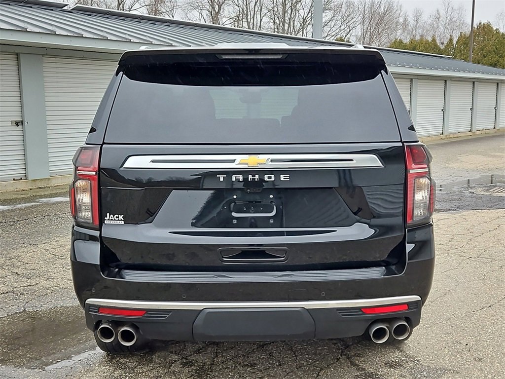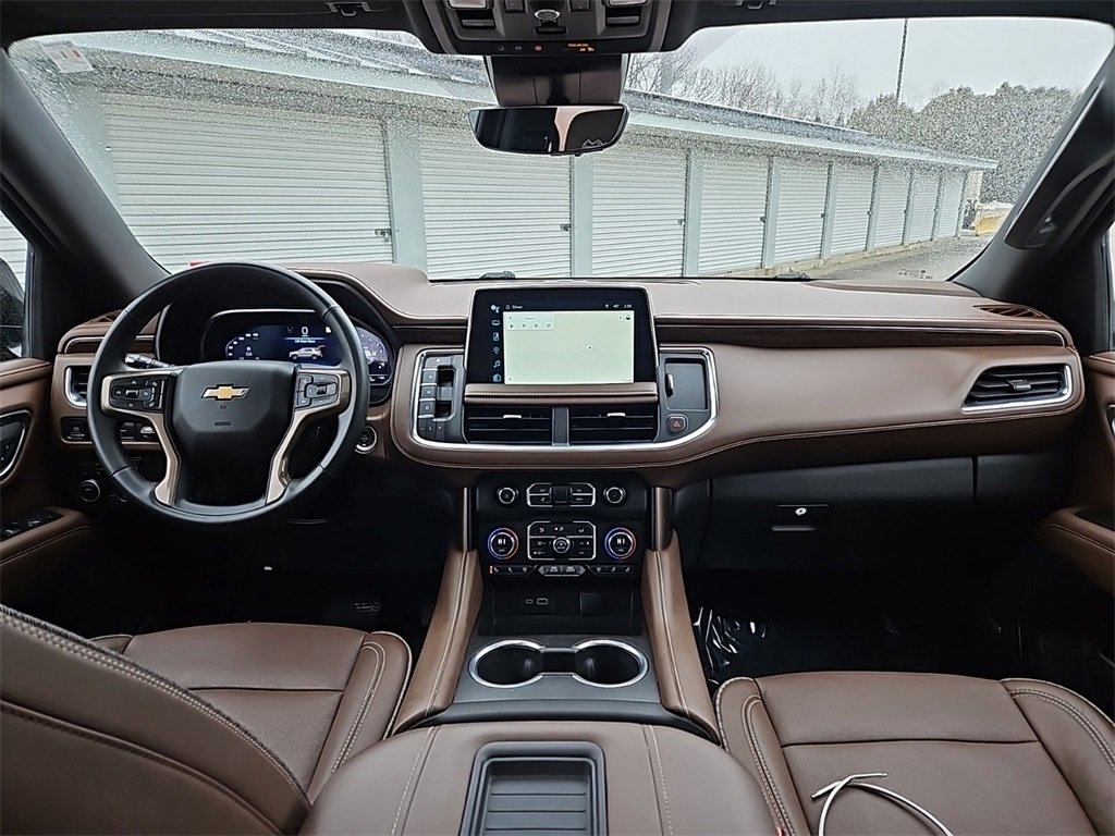 Black 2023 Chevrolet Tahoe High Country 4WD 10-Speed Automatic with Overdrive EcoTec3 6.2L V8 Tahoe High Country, EcoTec3 6.2L V8, 10-Speed Automatic with Overdrive, 4WD, Jet Black/Mocha Leather, 15 Diagonal Multi-Color Head-Up Display, 1st & 2nd Row Color-Keyed Carpeted Floor Mats, 2-Speed Active Electronic AutoTrac Transfer Case, 3rd Row 60/40 Power-Folding Split-Bench Seat, Bose 10-Speaker Centerpoint Surround Audio Sys Ft, Bright Front & Rear Door Sill Plates, Chrome Door Handles w/Body-Color Strip, Color-Keyed Carpeting Floor Covering, Driver & Front Outboard Passenger Airbags, Dual Exhaust System, Enhanced Automatic Emergency Braking, Enhanced Driver Information Center, Floor Console, Hands-Free Rear Power Programmable Liftgate, HD Surround Vision, Heated 2nd Row Outboard Seats, Heated Steering Wheel, Hill Descent Control, Infotainment Display, Inside Rearview Auto-Dimming Rear Camera Mirror, Lane Change Alert w/Side Blind Zone Alert, LED Daytime Running Lamps, License Plate Front Mounting Package, Memory Settings, Outside Heated Power-Adjustable Mirrors, Power Release 2nd Row Bucket Seats, Power Tilt & Telescopic Steering Column, Preferred Equipment Group 3LZ, Rear Camera Mirror Washer, Rear Cross Traffic Alert, Rear Pedestrian Alert, Remote Start, Safety Alert Seat, SiriusXM Radio w/360L, Universal Home Remote, Wireless Charging, Wrapped Steering Wheel.